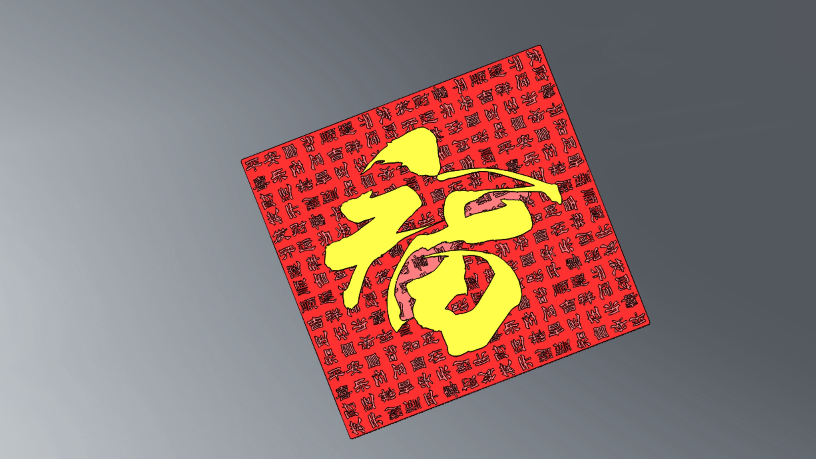 In chữ "FU" thư pháp bằng PLA với kích thước 256mm. Bạn có thể tạm dừng máy in ở độ cao 1mm để đổi màu, tạo hiệu ứng độc đáo cho biểu tượng may mắn này, thường dùng trong dịp Tết Nguyên Đán.