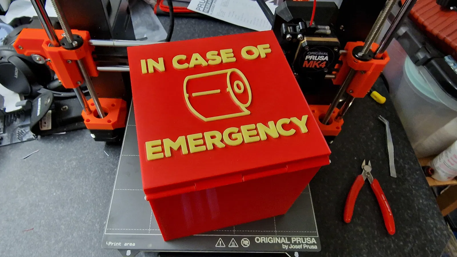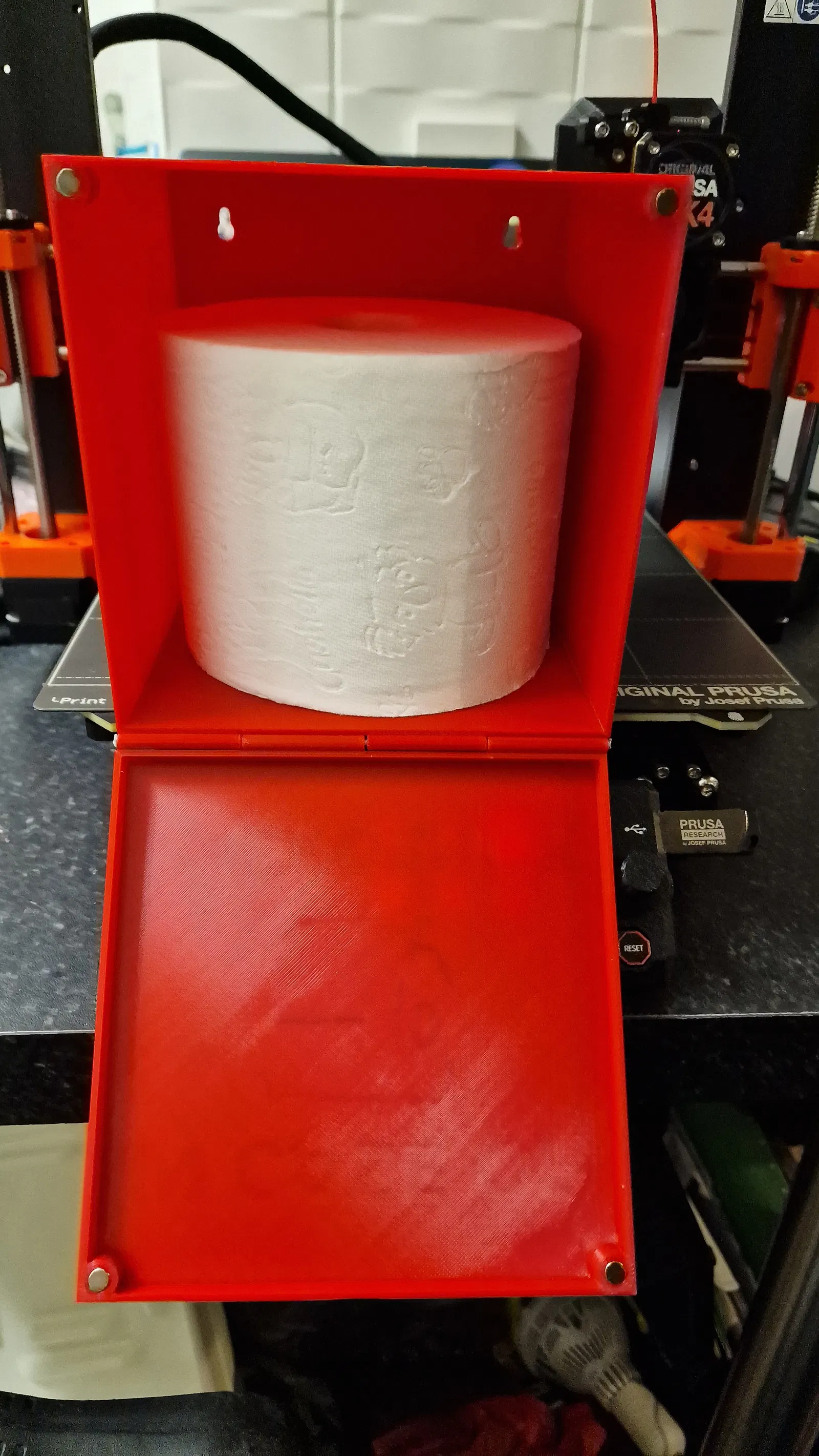 Có thể gắn bằng vít hoặc miếng dán tùy chọn của bạn! Không cần hỗ trợ, tất cả các bộ phận nên được nhập vào máy in 3D theo đúng hướng. Để hiệu quả nhất, hãy in các chữ cái và biểu tượng cuộn giấy bằng filament phát sáng trong bóng tối, để dễ dàng xác định trong những lúc hoảng loạn nửa đêm!