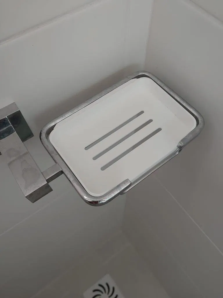 Chỗ để xà bông này được thiết kế đặc biệt để giữ xà bông chắc chắn, không bị rớt ra ngoài. Giờ thì tha hồ tắm táp mà không sợ bị gián đoạn nữa nha!