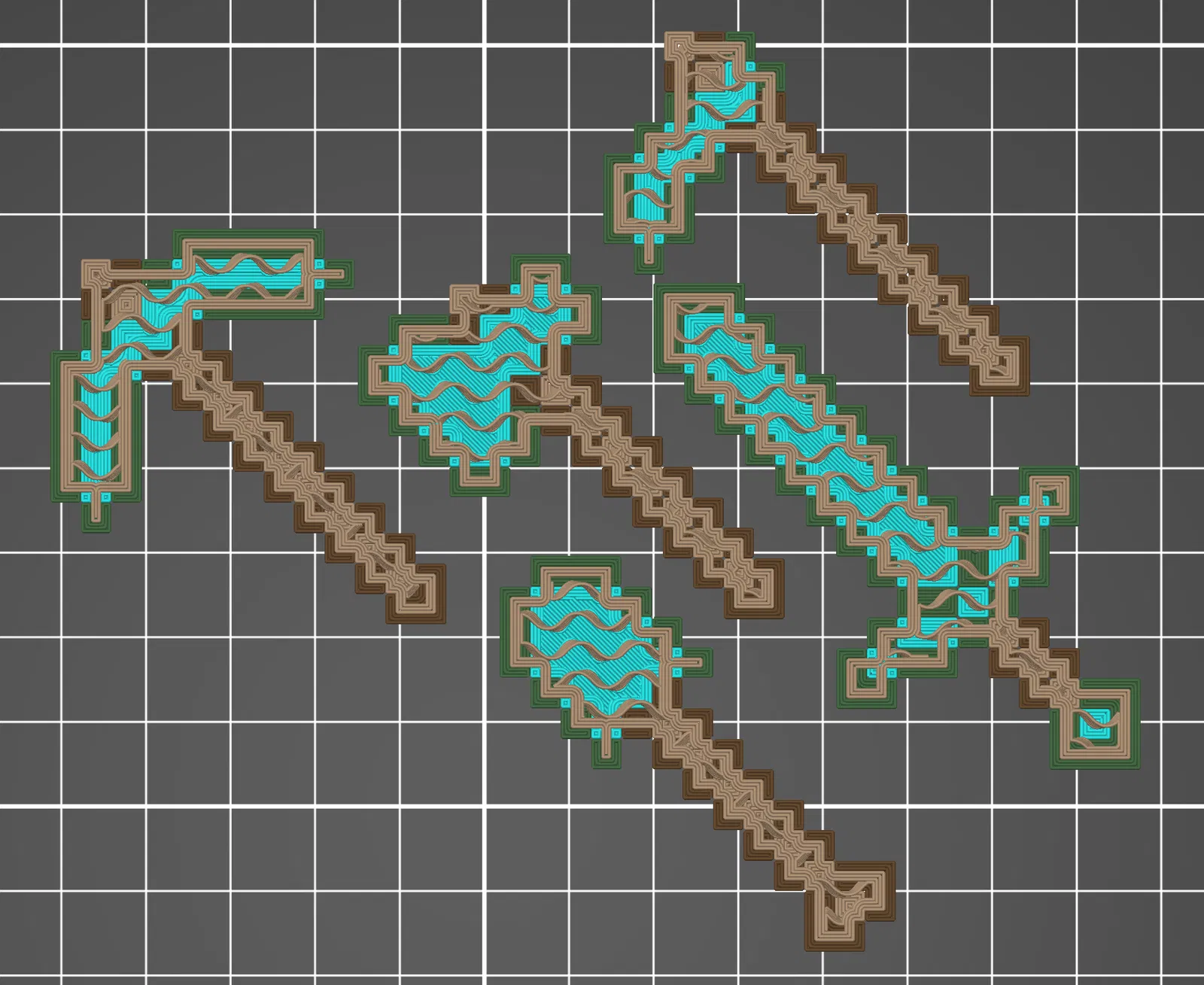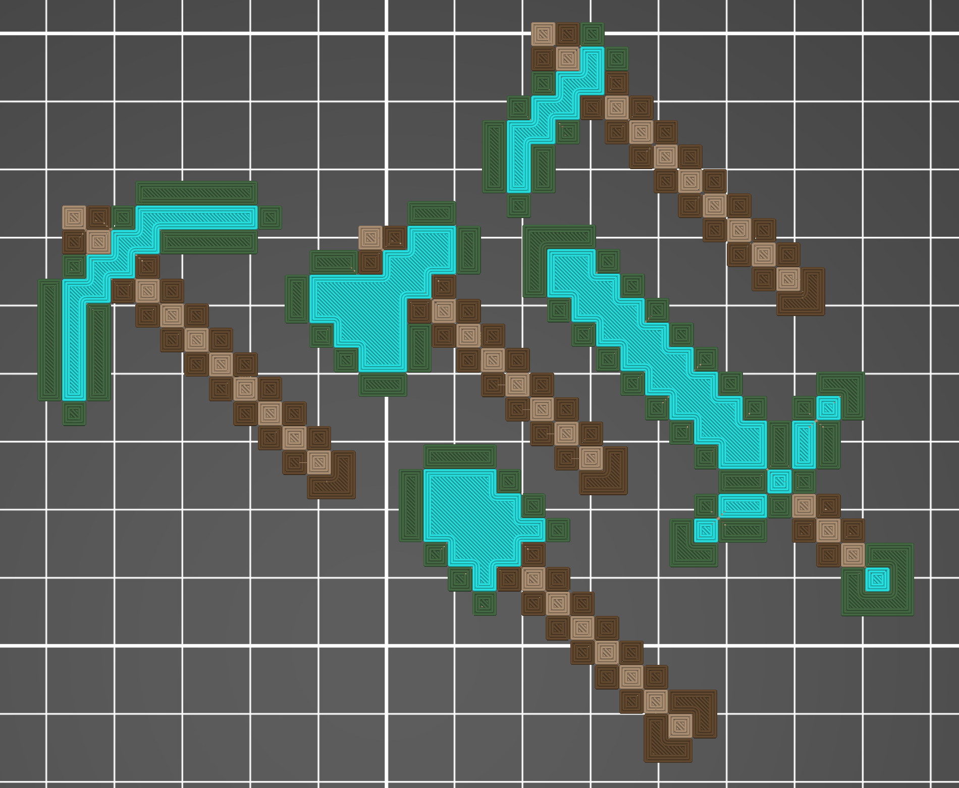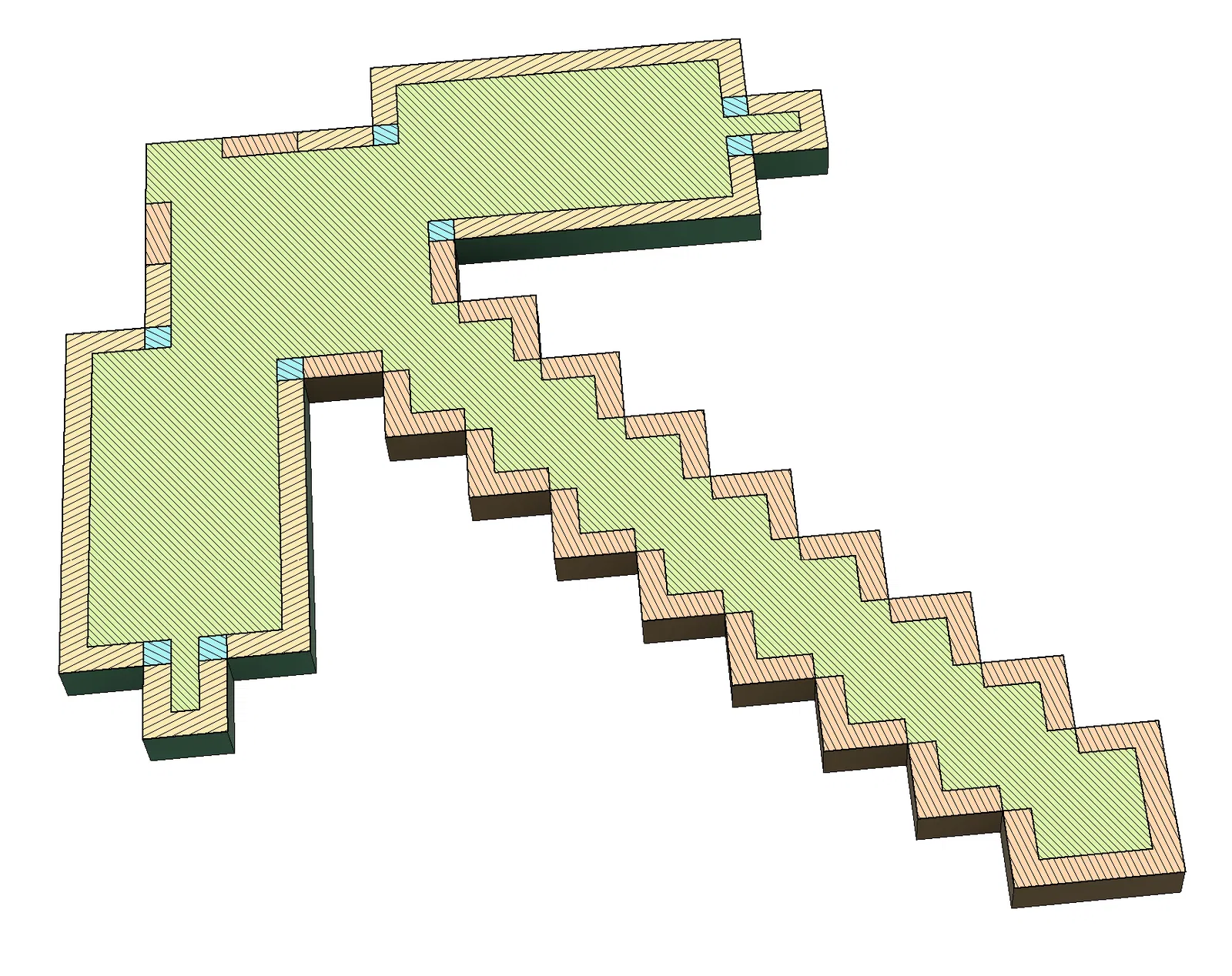 Mấy đứa nhỏ nhà tui muốn có mấy món đồ Minecraft mini. Cách dễ nhất thì in mấy cái mẫu xịn sò của GSAMakerspace trên Thingiverse luôn (cách đây 10 năm!), mà tui có cái máy XL và tui muốn có màu tụi nhỏ đòi phiên bản kim cương. Cảm hứng tiếp theo của tui đến từ cái bản làm lại này của GSAMakerspace, mà sau khi tô màu trong PrusaSlicer thì nó lại cắt lát không ngon lành gì và bị yếu dọc theo mấy cái cạnh pixel. Nên tui tự làm bằng Fusion 360.
