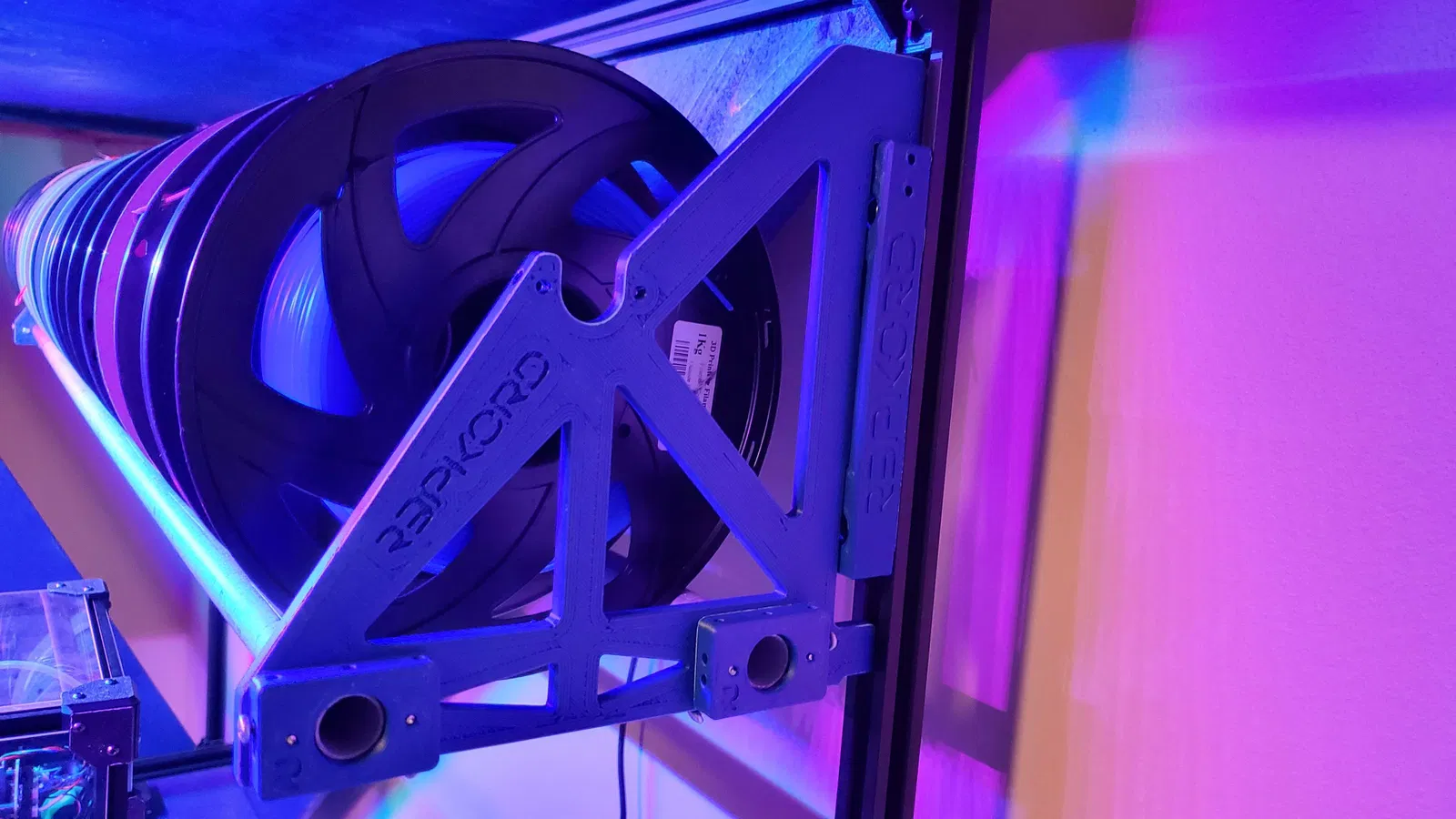 Ke gắn RepRack lên thanh nhôm 2020, xài 2 con bu lông M5x18 và 2 con đai ốc búa M5. Thiết kế đặc biệt giúp loại bỏ nhu cầu dùng long đền khoá. Có sẵn lỗ phụ để tuỳ biến thêm nếu thích.