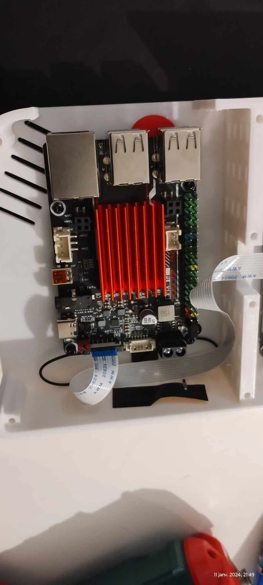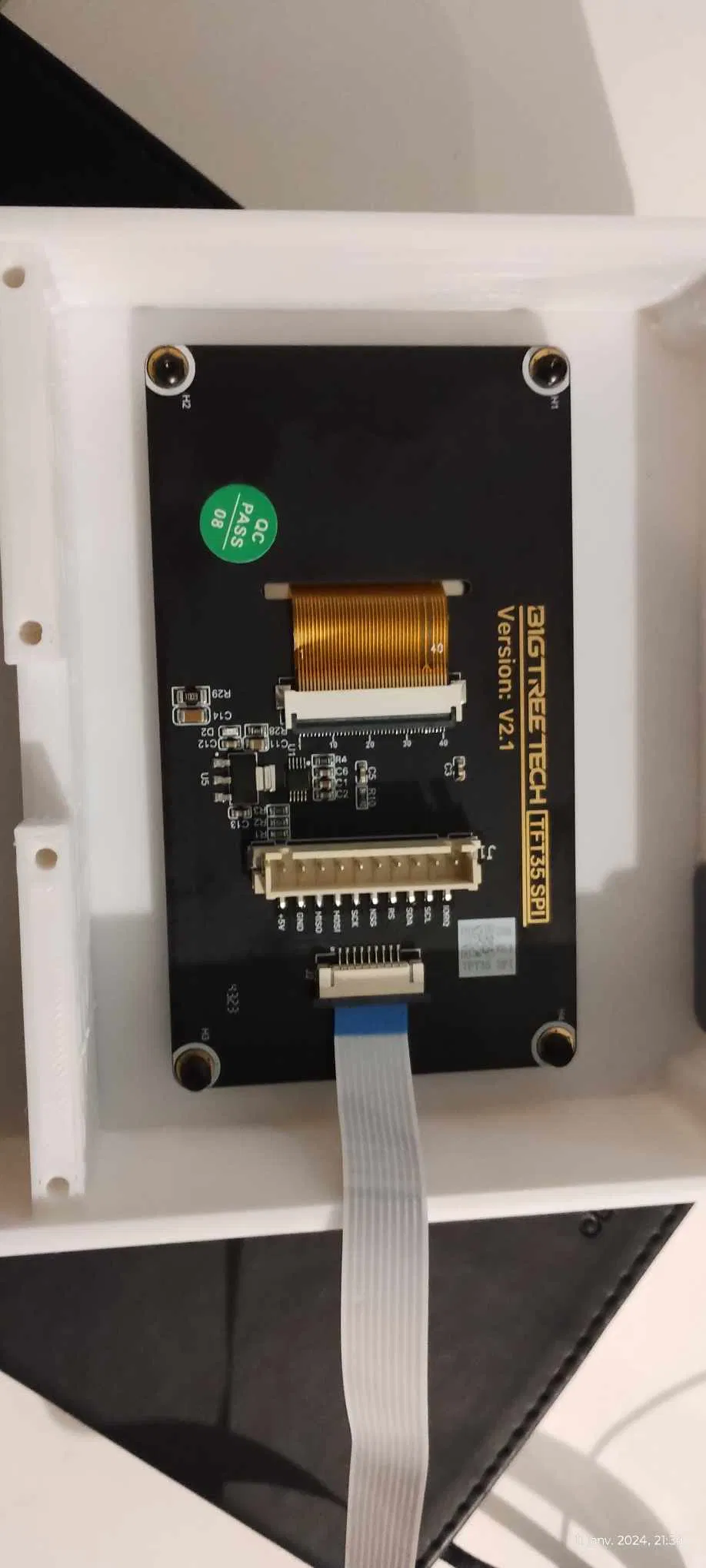 Hộp đựng cho Cheapad của Tom's Basement. Có thể gắn lên bộ phận giữ zin của Ender3V2, nhưng do các pát giữ được bắt vít nên không bắt buộc phải dùng. Các chữ màu đen (rất mảnh) được in cùng lớp với mặt trước của hộp màu trắng (xem các hướng dẫn in đa màu trên một lớp). Các nút bấm là giả, được dán từ bên trong trước khi gắn BTT Pi. Cần chuẩn bị 8 con ốc M2x8 (kèm đai ốc M2 để làm vòng đệm) cho 4 ốc màn hình và 4 ốc BTT Pi, 8 con ốc M3 (chọn chiều dài tùy ý) để gắn nắp lưng, và 2 con ốc M4x12 cho các pát giữ kiểu Ender3V2.