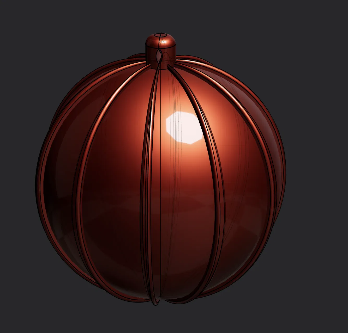 Quả châu Giáng Sinh đơn giản, đường kính khoảng 80mm, được chia làm hai nửa để dễ in hơn, có móc treo.