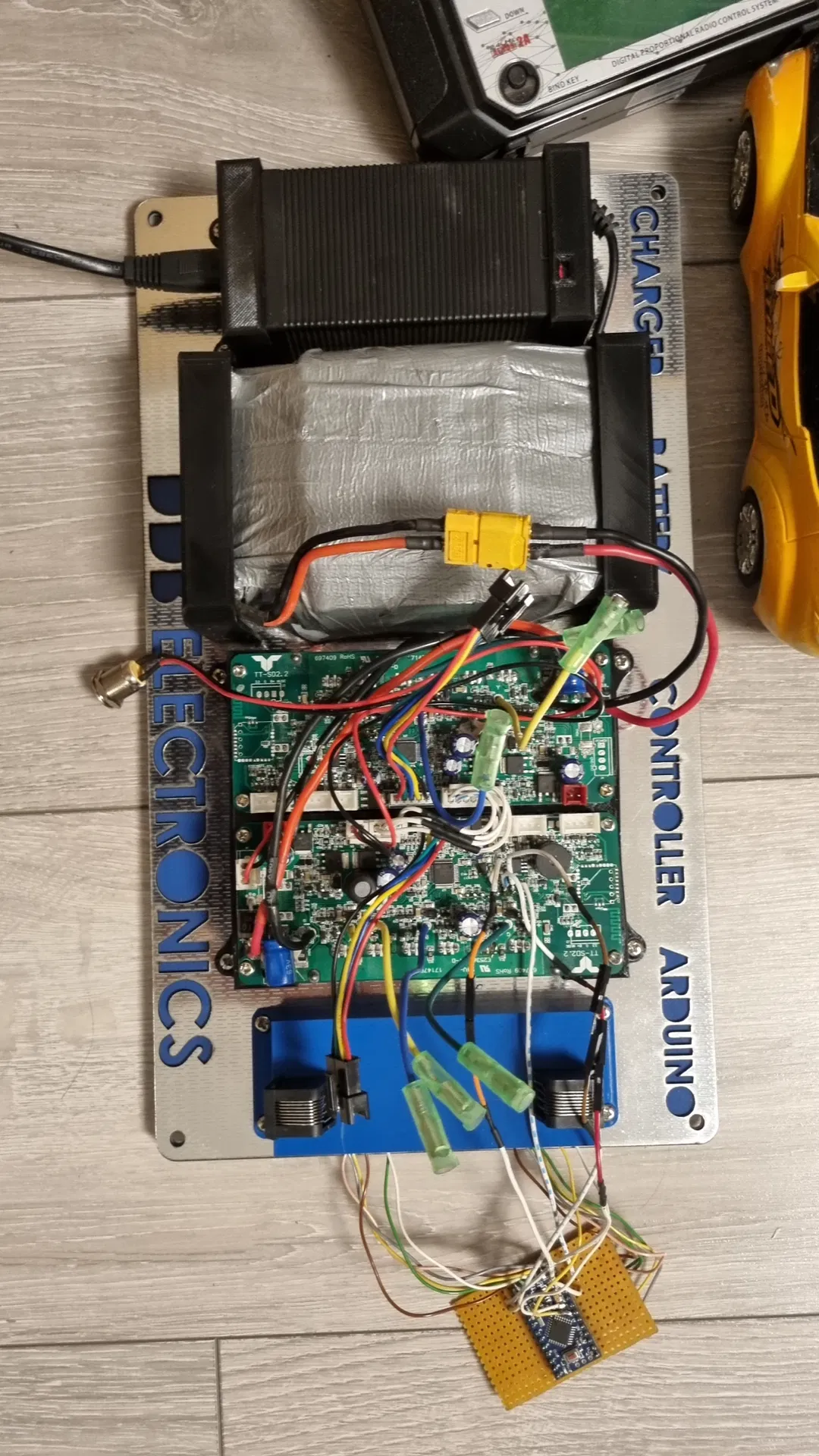 Giữ tất cả các bộ phận lại với nhau trong một vỏ duy nhất, bao gồm cả chỗ sạc, pin, khay giữ ESC và hộp điều khiển Arduino. Một thiết kế tuyệt vời cho dự án DIY của bạn.