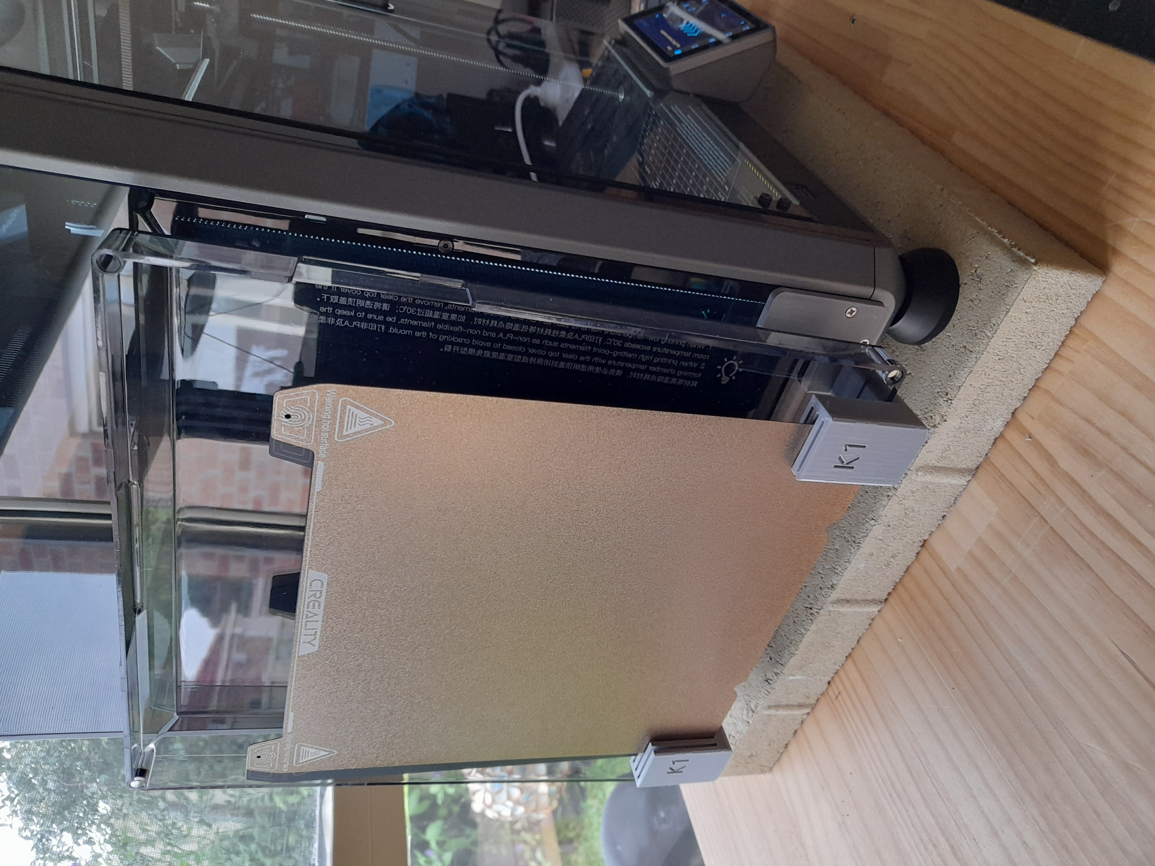 Chỗ để cất giữ các tấm tản nhiệt phụ và nắp cho máy in 3D Creality K1. Bản mod nhanh gọn, giúp bạn lưu trữ đồ đạc một cách ngăn nắp.
