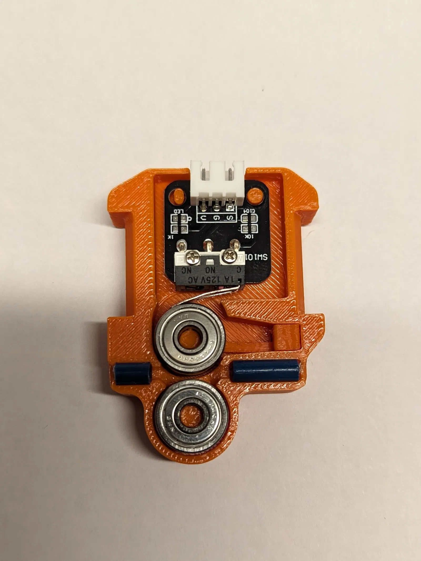 Dây tóc được dẫn qua ống PTFE và chạy qua 2 vòng bi, một trong số đó được treo trên các cánh tay và kích hoạt công tắc hành trình (tiêu chuẩn Creality). Sự kết hợp của ống PTFE và vòng bi có nghĩa là gần như không có sự hao mòn.