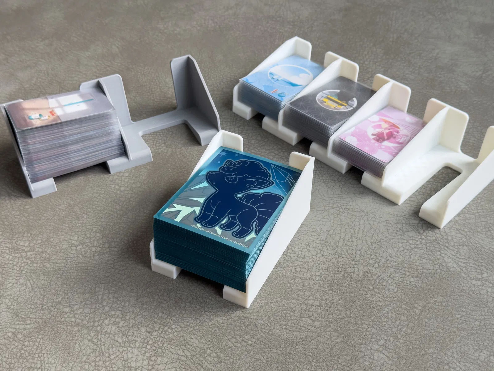 Mấy cái khay rút bài/bỏ bài này giúp giữ bài không bị lung tung. Có nhiều kiểu lắm nha, ví dụ như khay 1, 2, 3 hay 4 ô, thiết kế để xài với bài có bọc sleeve luôn á, theo kích cỡ mấy sản phẩm của hãng Gamegenic luôn.