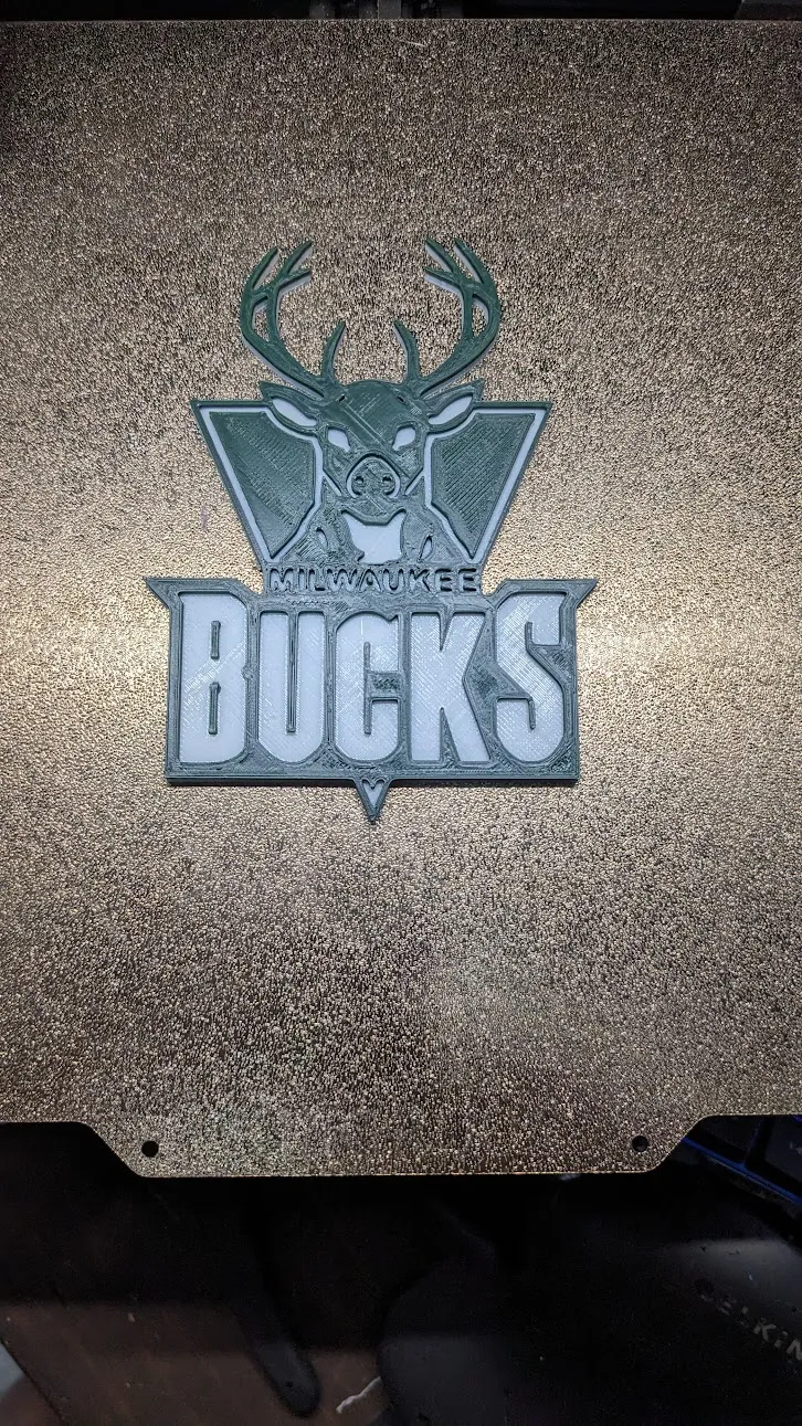 Một logo Milwaukee Bucks mà tôi đã chuyển đổi thành tệp 3D. Nếu in với độ cao lớp .2mm, việc thay đổi sợi filament ở lớp thứ 11 sẽ cho phép tạo ra vẻ ngoài hai màu. Tệp thứ hai bao gồm một vòng ở trên cùng để treo sản phẩm cuối cùng.