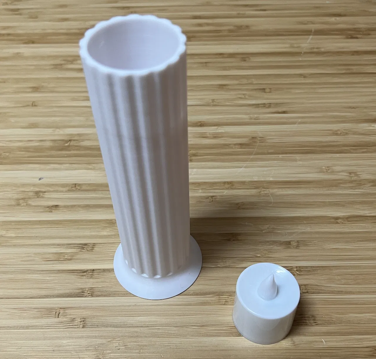 Chân nến đèn LED. Vừa với nến tealight đường kính 36mm, sâu 32mm.
