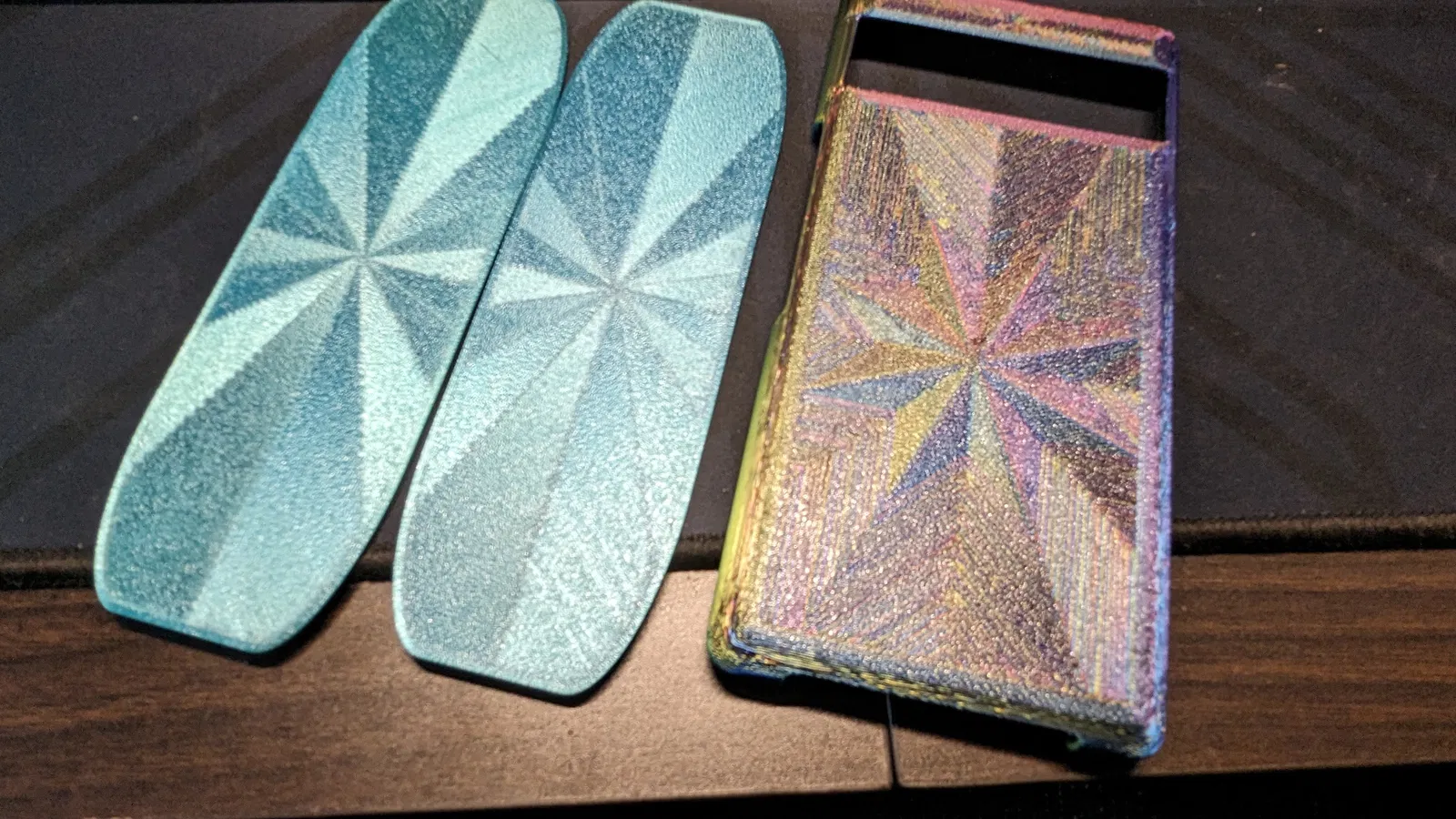 Trong mấy tấm hình tui chụp có cái ốp điện thoại á, cái đó chỉ để tui khoe cái hoa văn với sợi filament 3 màu thôi.