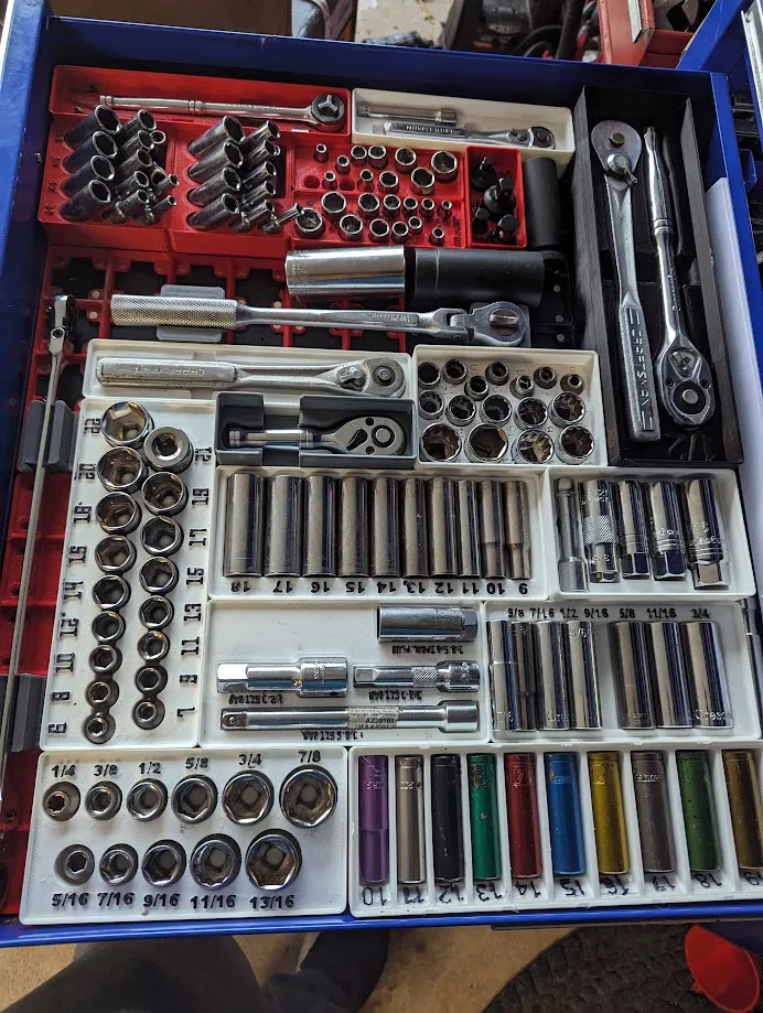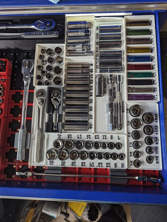 Dùng để đựng cờ lê 3/8 với chiều dài tùy chỉnh, có lỗ khoét nam châm 6mm. Thích hợp để làm gọn không gian làm việc, sắp xếp dụng cụ một cách khoa học, đặc biệt là trong hệ thống Gridfinity.