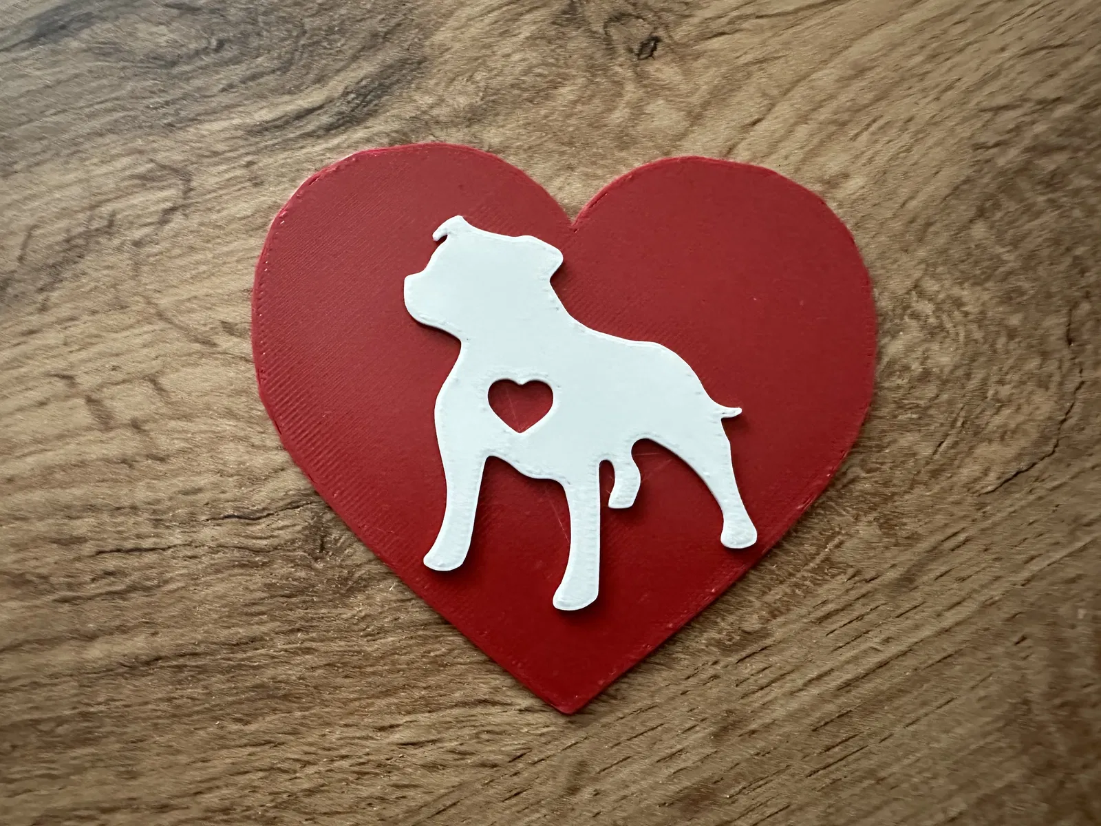 Mô hình 3D hình trái tim cách điệu, mang hình ảnh chú chó Staffordshire bull terrier đáng yêu. Hoàn hảo cho những người yêu chó, đặc biệt là giống Staffy. Tải về file STL để in 3D và thể hiện tình yêu của bạn.