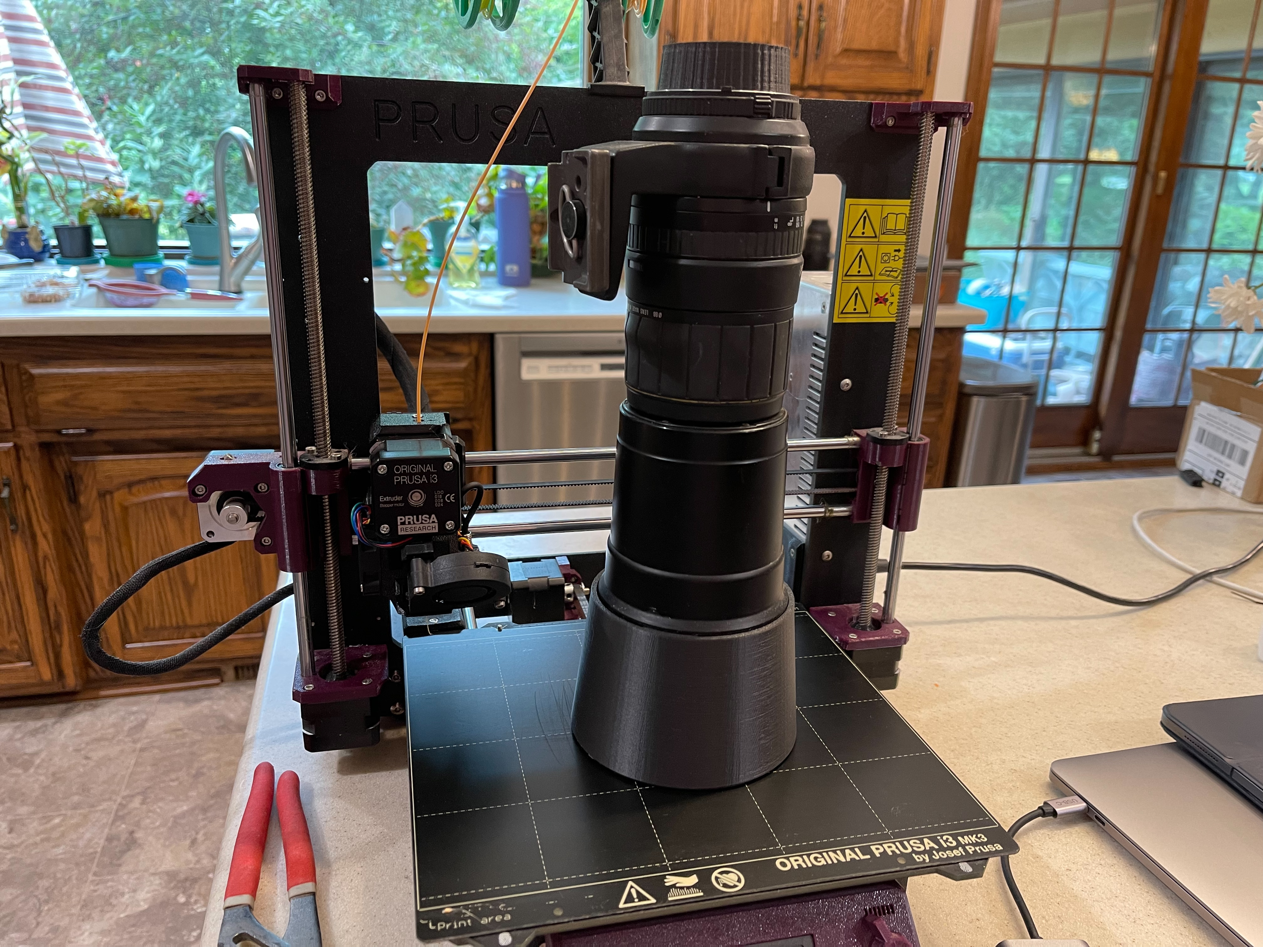 Đây là loa che nắng cho ống kính tele Sigma 170 đến 500. Đây là loa che nắng thứ hai tôi tự thiết kế, và đúng vậy, tôi khá cẩn thận với máy ảnh và thiết bị của mình. Hầu hết các ống kính của tôi là Nikon, và việc tìm phụ tùng thay thế cho chúng khá dễ dàng. Thật không may, tôi gặp khó khăn trong việc tìm phụ tùng cho ống kính Sigma của mình.