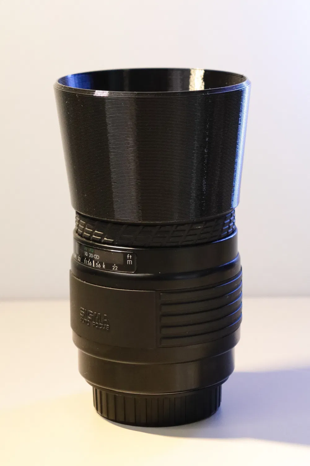 Tui đã thu nhỏ mẫu gốc của Lopatka lại để vừa với ống kính Sigma UC Zoom 70-210mm 1:4-5,6 đời cũ của tui với ngàm Canon EF. Tui không tìm được thông tin nào về loại hood nào phù hợp với ống kính cũ này.
