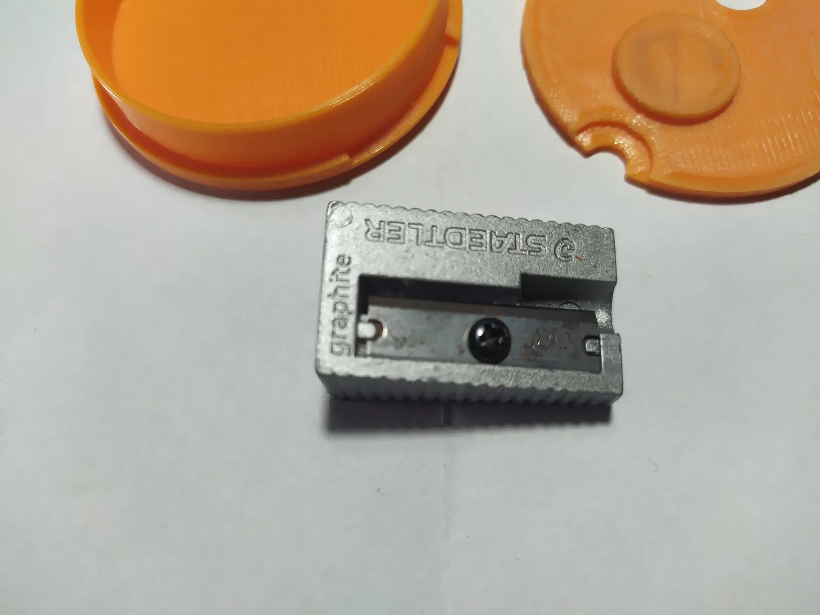 Tôi đã thiết kế cái hộp này đặc biệt cho loại gọt bút chì này: https://www.staedtler.com/intl/en/products/pencils-and-accessories/sharpeners/staedtler-510-10-metal-sharpener-510-10/