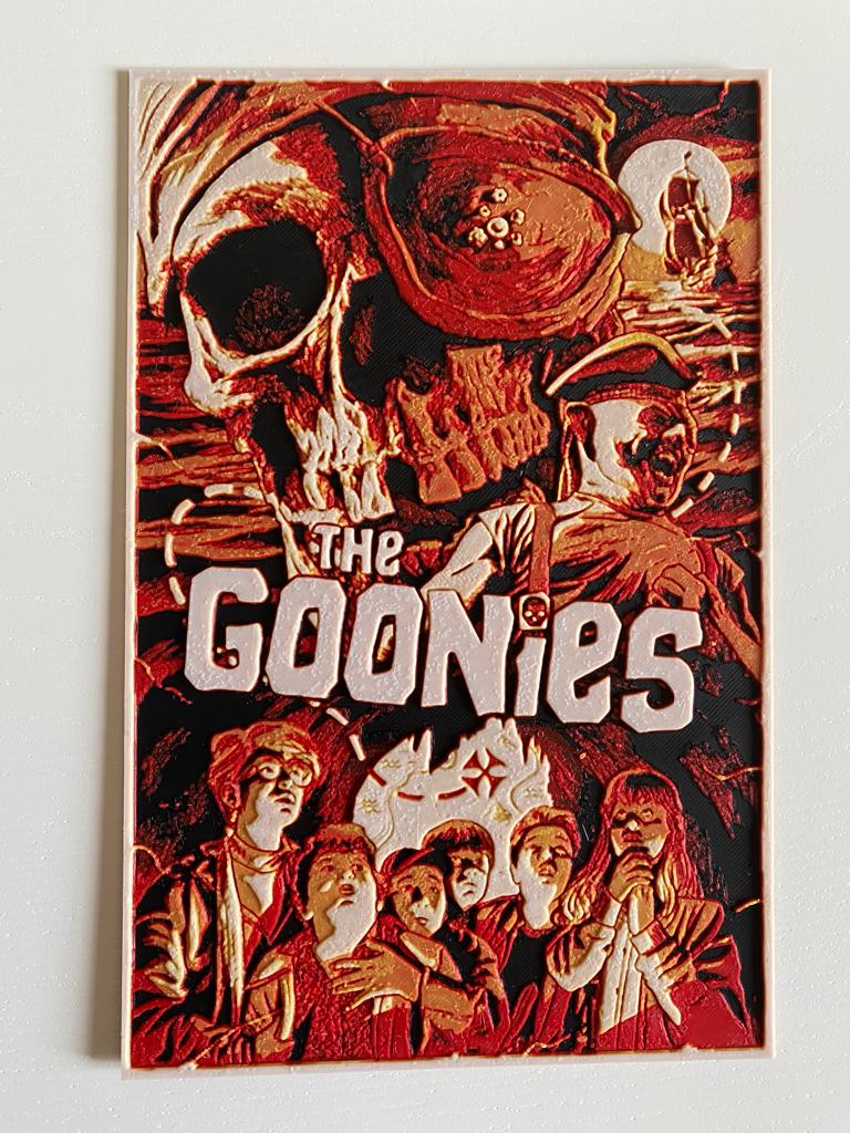 Mô hình 3D The Goonies phiên bản Hueforge, dựa trên hình vẽ của Francesco Francavilla. Tác giả chia sẻ kinh nghiệm in và màu filament đã sử dụng. Kích thước mô hình: Cao 230mm, Ngang 149.29mm. Hướng dẫn in chi tiết kèm swap màu filament.