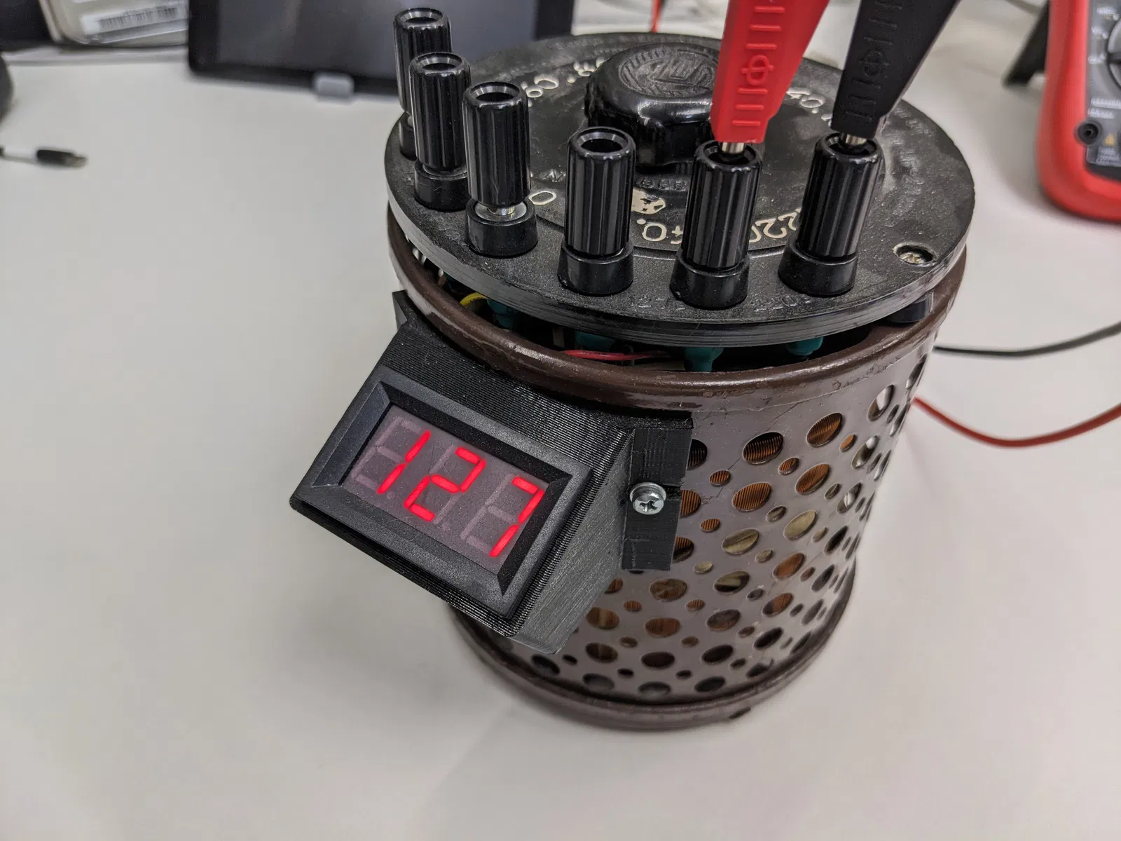 Tao muốn có cái màn hình hiển thị điện áp kỹ thuật số cho cái variac cũ của tao. Thế là tao mua một cái đồng hồ đo điện áp AC rẻ tiền trên Aliexpress và thiết kế cái vỏ này để gắn vừa vặn với cái variac của tao.