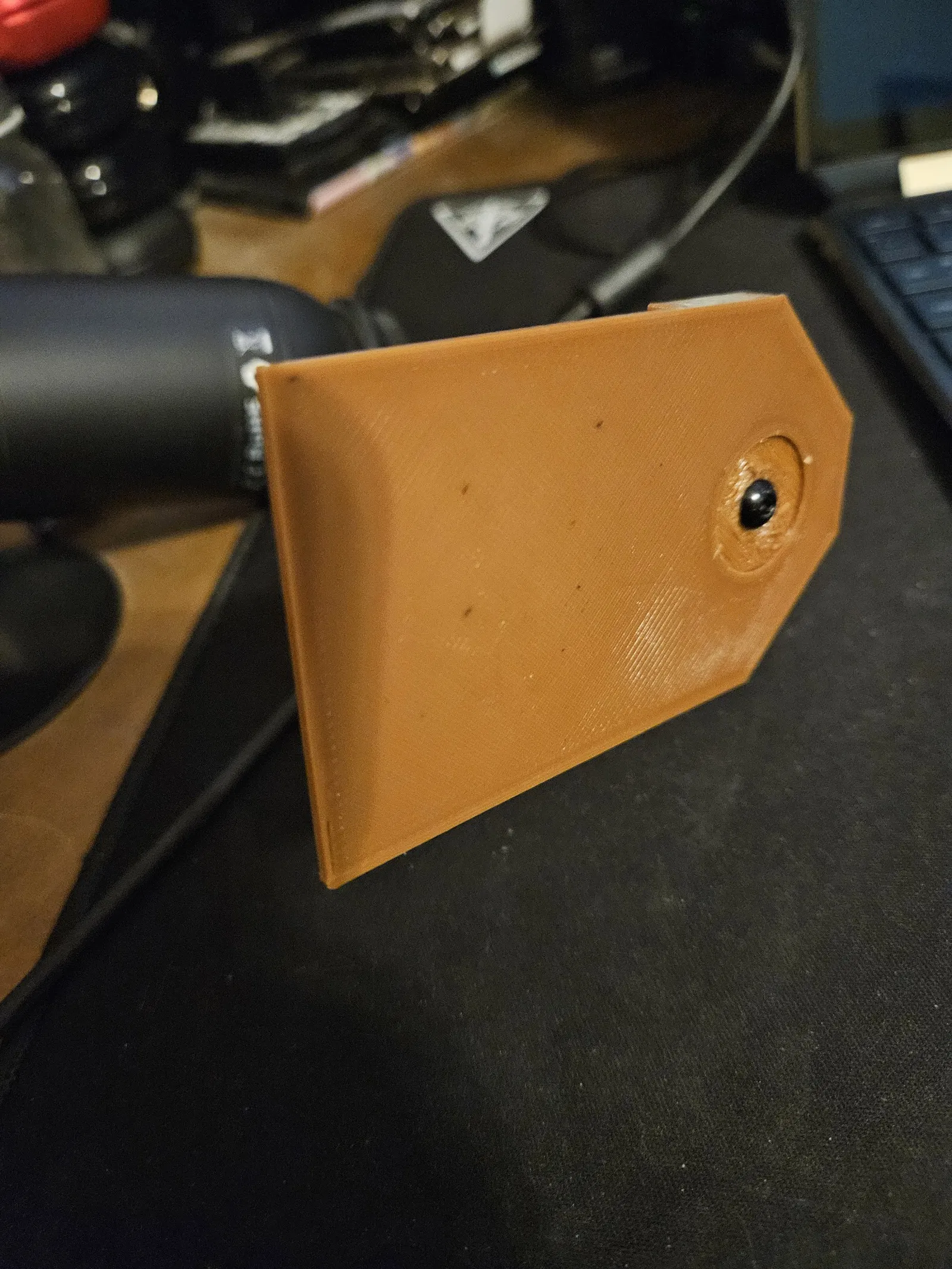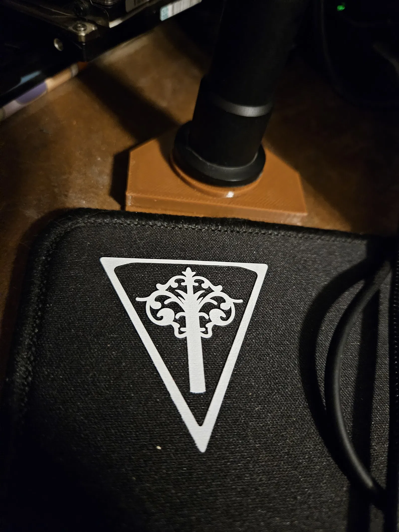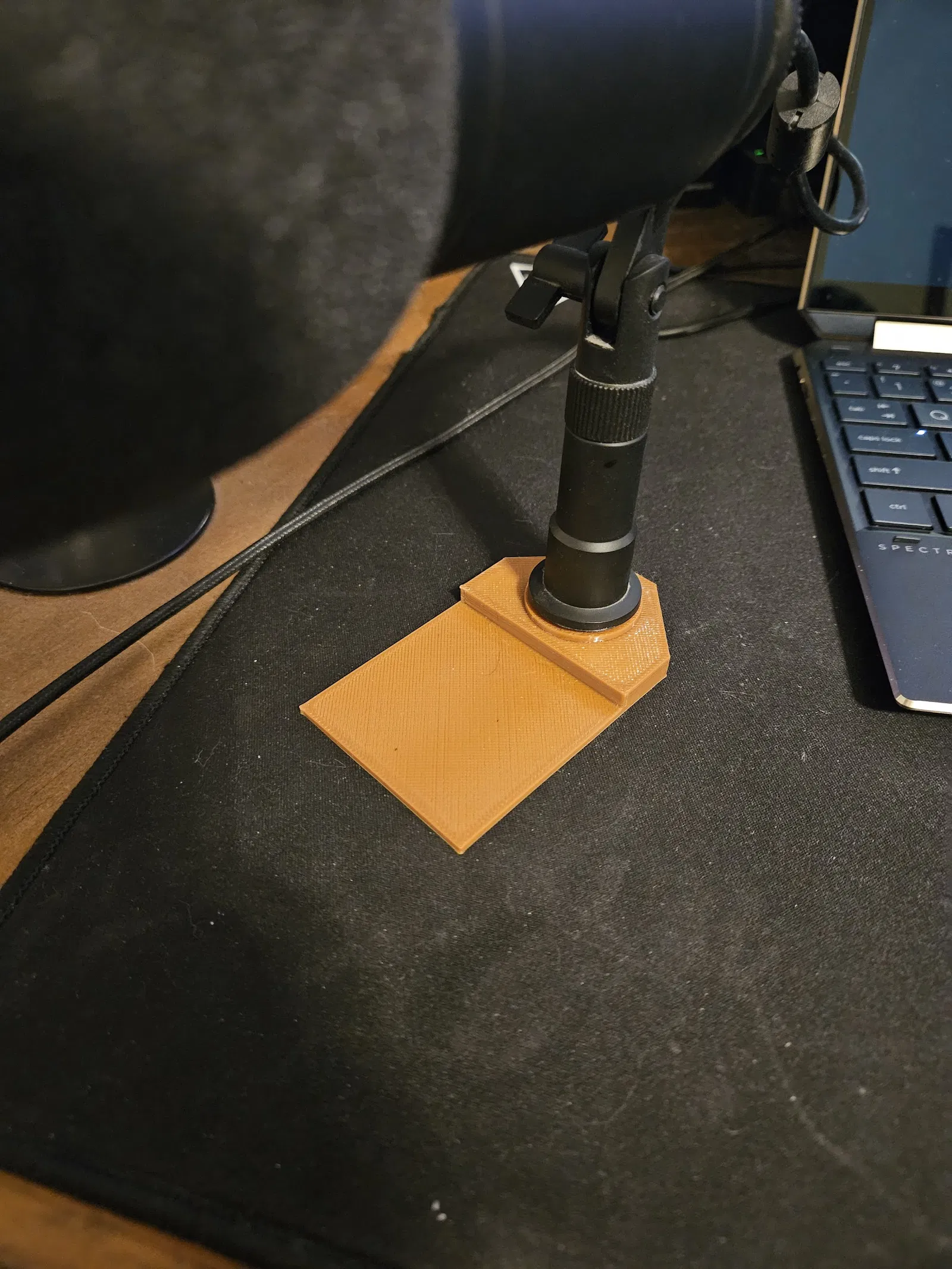 Đây là cái chân đế cho micro condenser Aukey mi-u2 của mình, giúp nó lọt xuống dưới tấm lót chuột/bàn di chuột và đứng thấp hơn một chút để nó lọt xuống dưới cái màn hình của mình. Mình biết cái này hơi đặc thù một chút, nhưng có thể có ai đó cũng có nhu cầu tương tự.