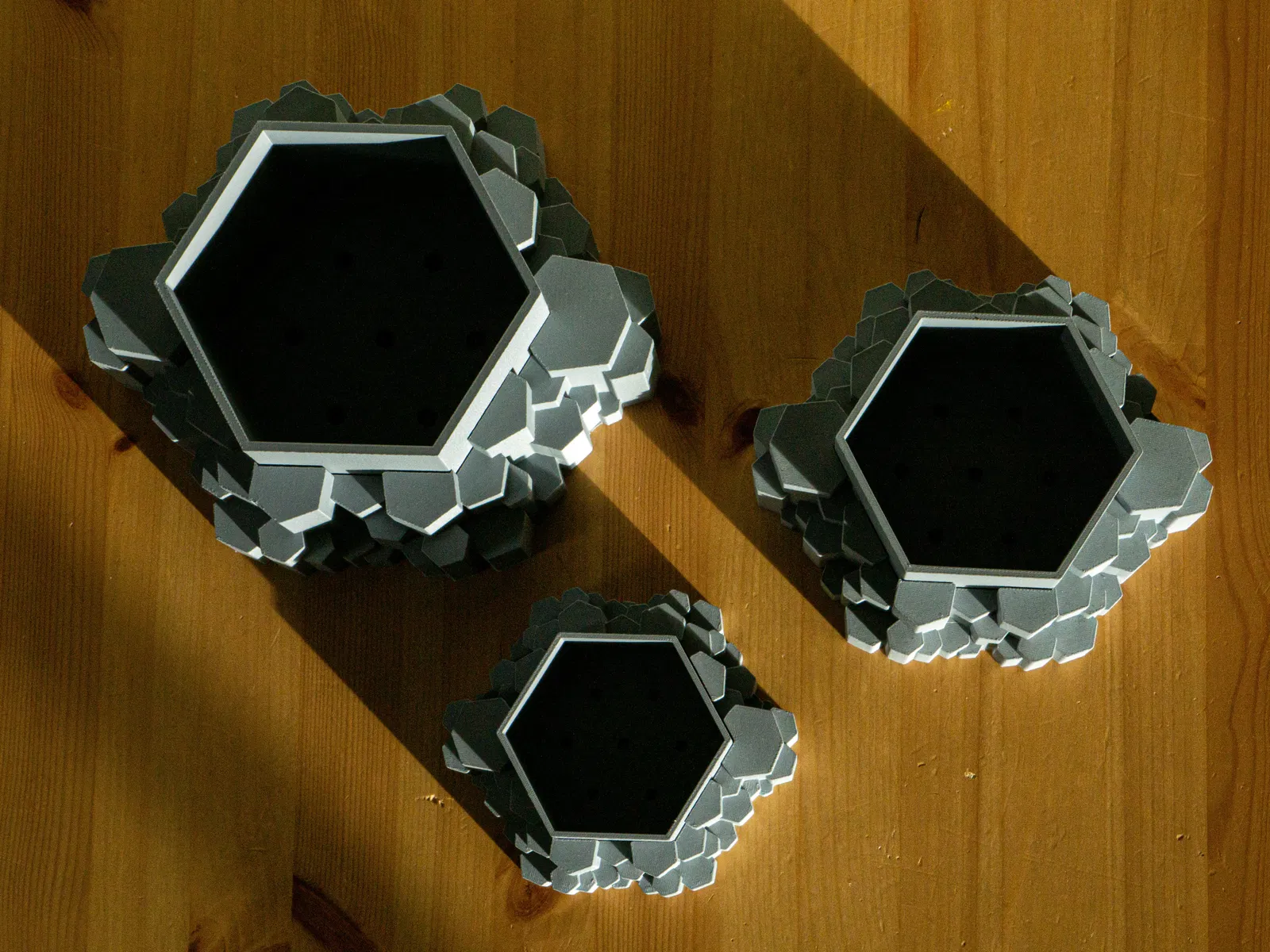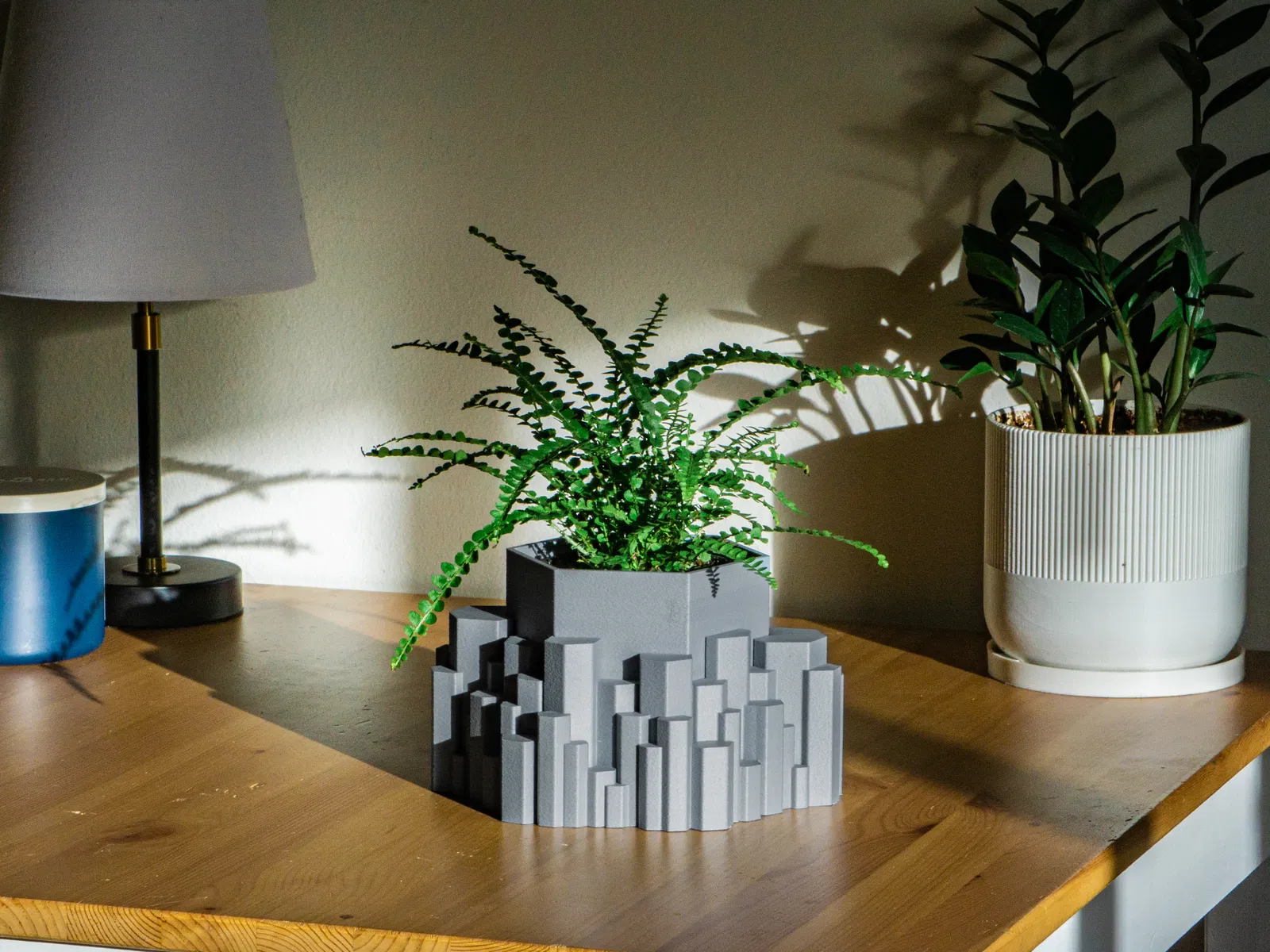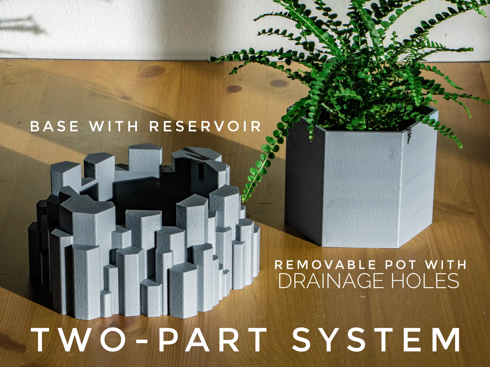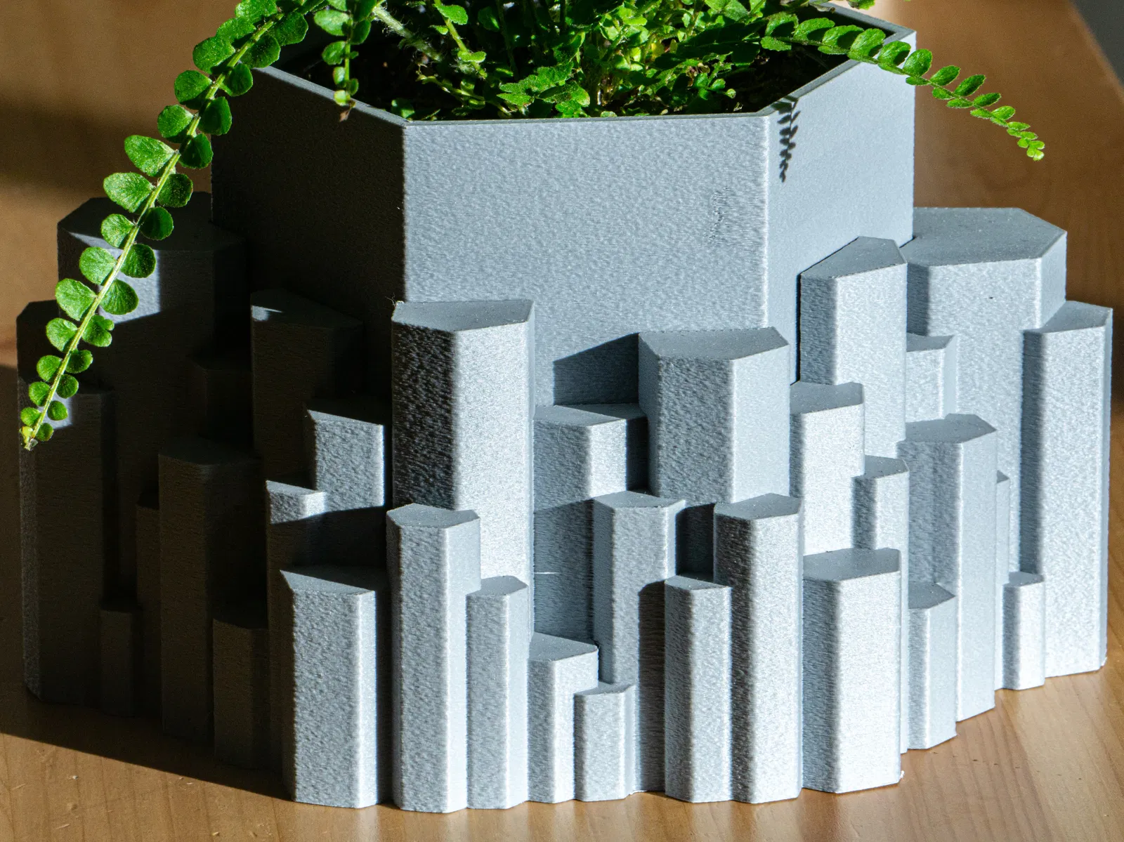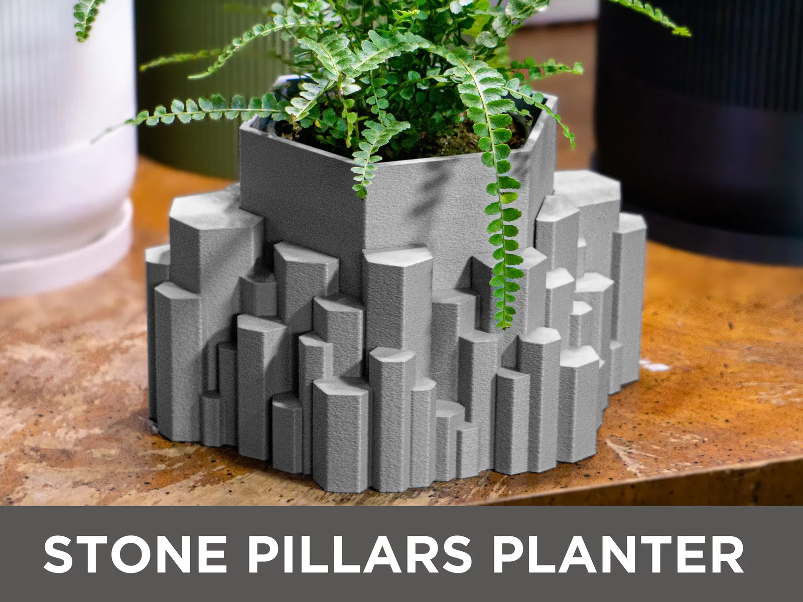 Chậu trồng cây hai phần lấy cảm hứng từ cột đá bazan ở Iceland, có lỗ thoát nước và khay. Thích hợp cho cây mọng nước, xương rồng và cây trồng trong nhà. Kích thước đa dạng. Cần cài đặt in chi tiết để có độ khít tốt nhất.