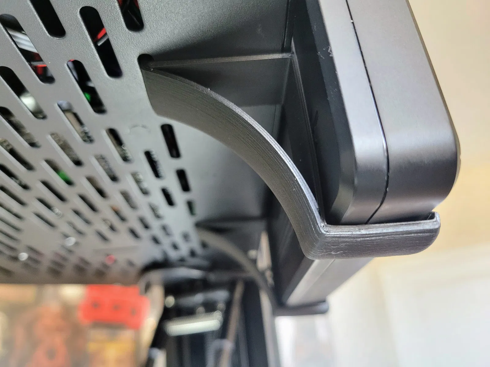 Giá đỡ để gắn màn hình/speederpad của v400 lên phía trên máy in. Móc vào các lỗ thông hơi bên dưới logo, và áp lực từ màn hình khi lắp vào giúp giữ cho giá đỡ cứng cáp vào phần trên của máy in. Những cái này cũng tương thích với bộ nâng nắp phổ biến mà một số người dùng.