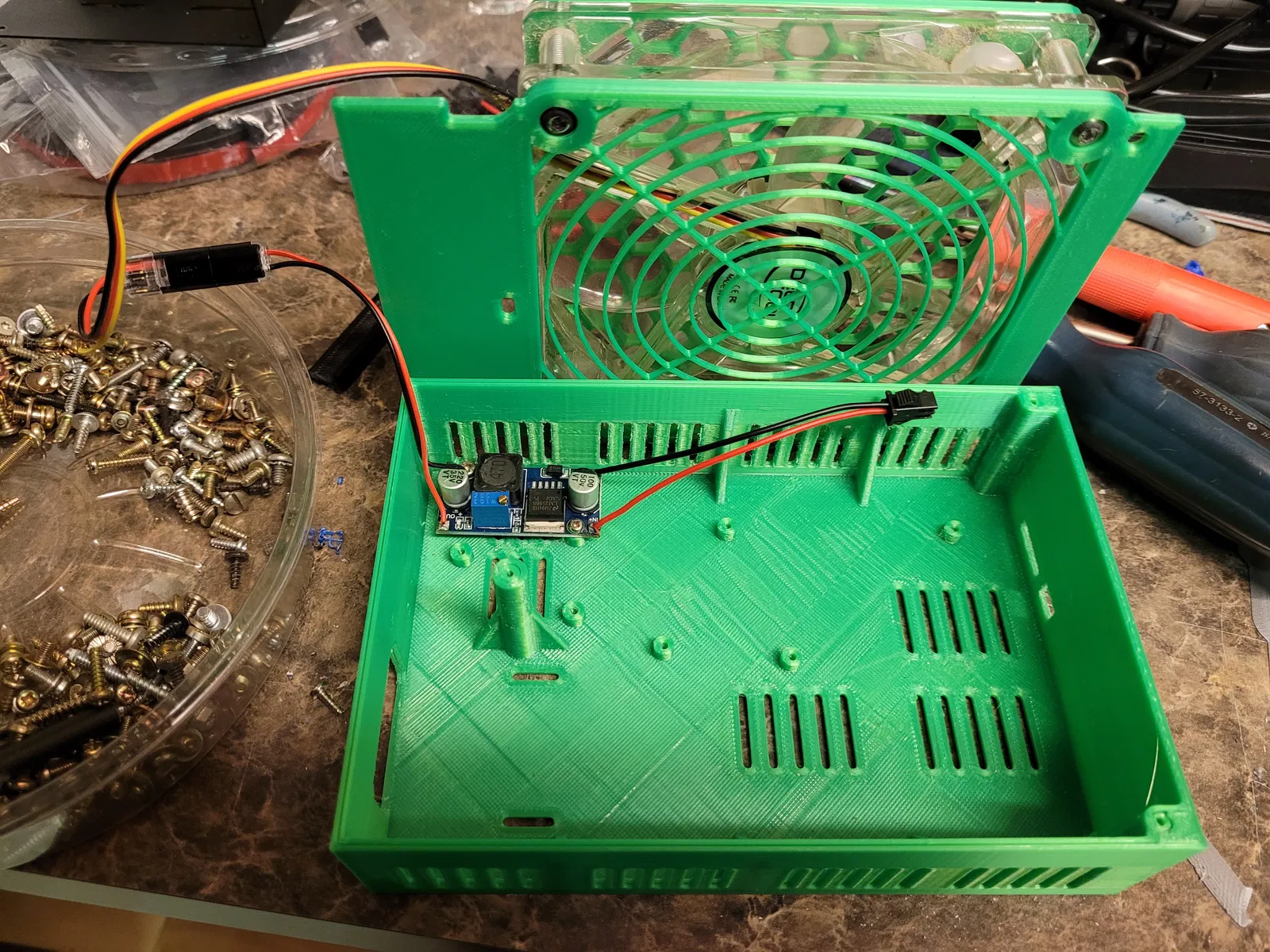 tôi đã bao gồm các tệp của Usuariu cũng như tệp (GXS remix) của tôi Tôi chỉ chỉnh sửa lại nắp để phù hợp với quạt 120mm ở bên ngoài.