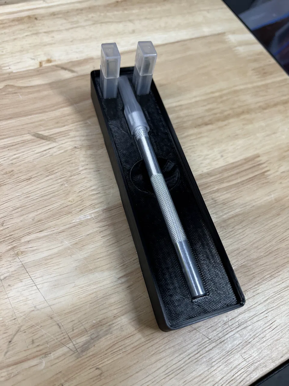 Giá đỡ dao rọc giấy cho hệ thống Gridfinity. Thiết kế với các lỗ để gắn dao rọc giấy và lưỡi dao thay thế, có lỗ để gắn nam châm. Khuyến nghị in ở độ cao lớp 0.2 để các lỗ in sạch sẽ, không cần hỗ trợ.