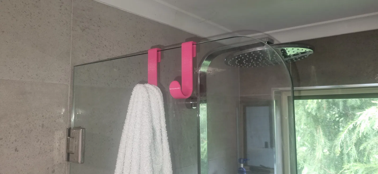Một cái móc đơn giản để treo khăn tắm của bạn, v.v. lên màn hình kính phòng tắm. Dùng PLA, đầu phun 0.6mm, 7 lớp tường, độ dày lớp 0.2mm, không cần support. Kết quả có thể thay đổi nếu không dùng brim.