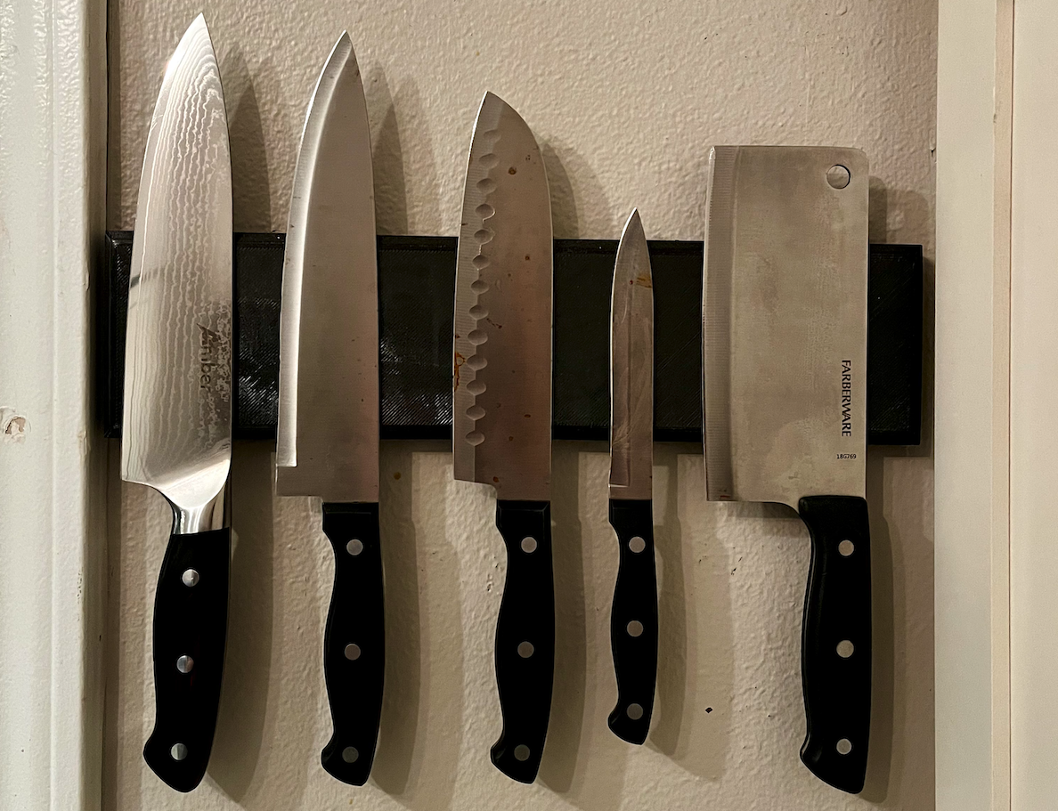 Lưu trữ dao một cách gọn gàng và an toàn với khối dao nam châm gắn tường này. Dễ dàng lắp đặt, chỉ cần in hai nửa, luồn nam châm dạng thanh vào và gắn lên tường. Hoàn hảo cho căn bếp của bạn.