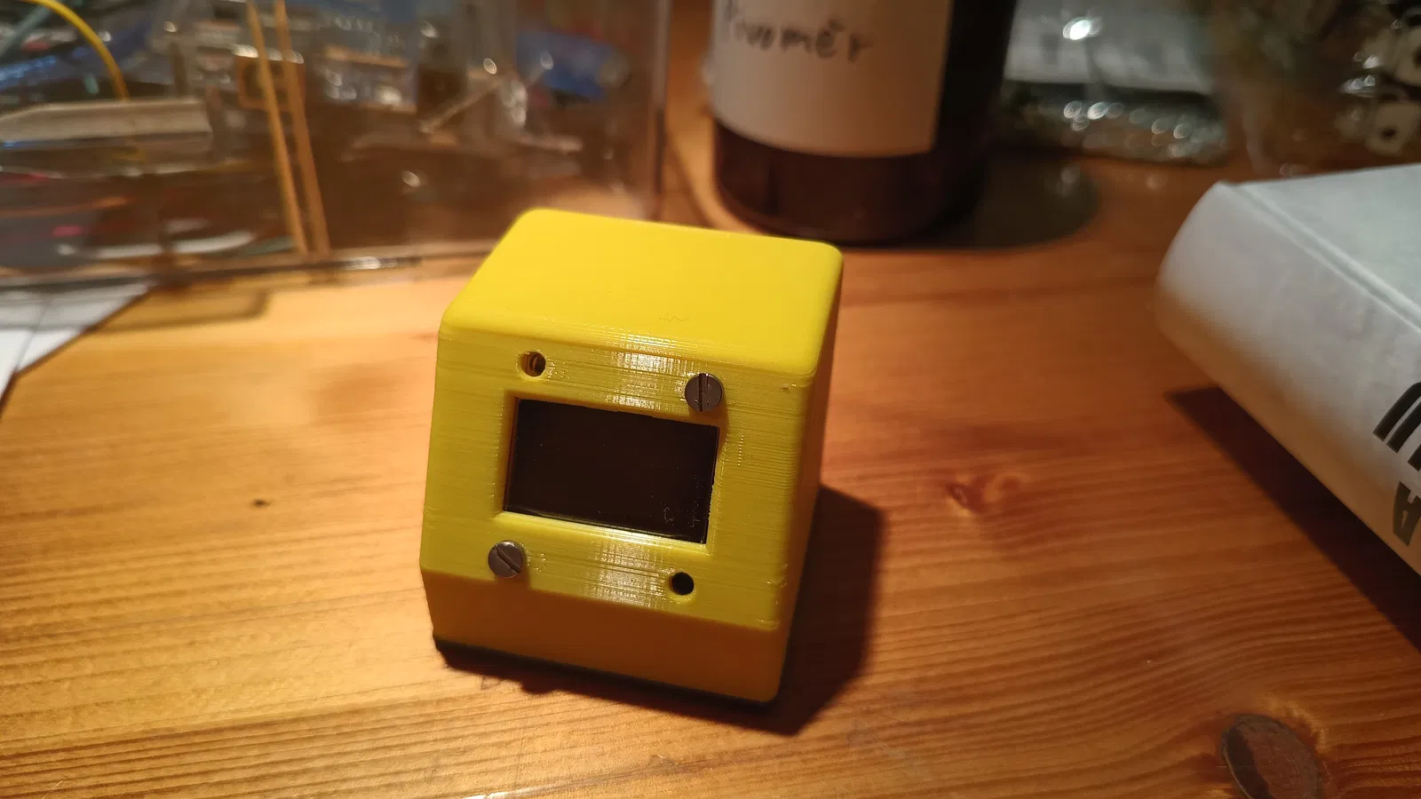 Đây là một cái vỏ nhỏ cho dự án trạm thời tiết của ThingPulse (https://github.com/ThingPulse/esp8266-weather-station). Nó có thể chứa một màn hình OLED I2c 0.96" 128x64, một ESP8266-01 (kể cả khi hàn trên bo mạch với bộ điều chỉnh 3.3V), pin Li-Ion nhỏ (ví dụ: từ tẩu thuốc lá điện tử dùng một lần) và một mô-đun sạc và bảo vệ TP4056 cổng USB-C (loại này). Mô-đun TP4056 được giữ cố định bằng băng dính hai mặt và đặt trong phần lõm.