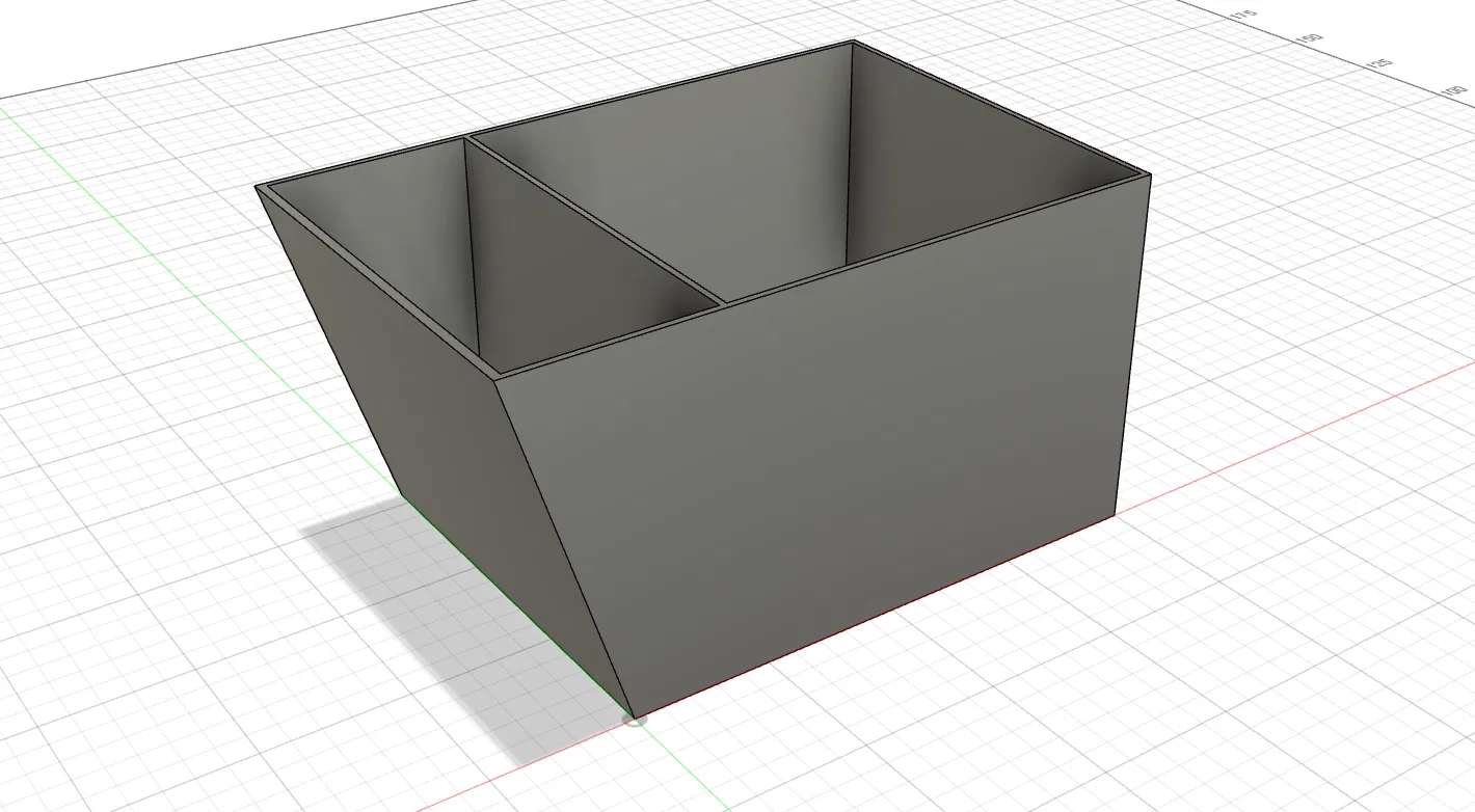 Hộp chia ngăn kéo có cạnh trong bo tròn, như tiêu đề đã nói. Hộp được chia thành một ngăn lớn và một ngăn nhỏ, với một thành bên được làm nghiêng để khớp với ngăn kéo có cạnh bo tròn. Có file Fusion360 đi kèm để tùy chỉnh.
