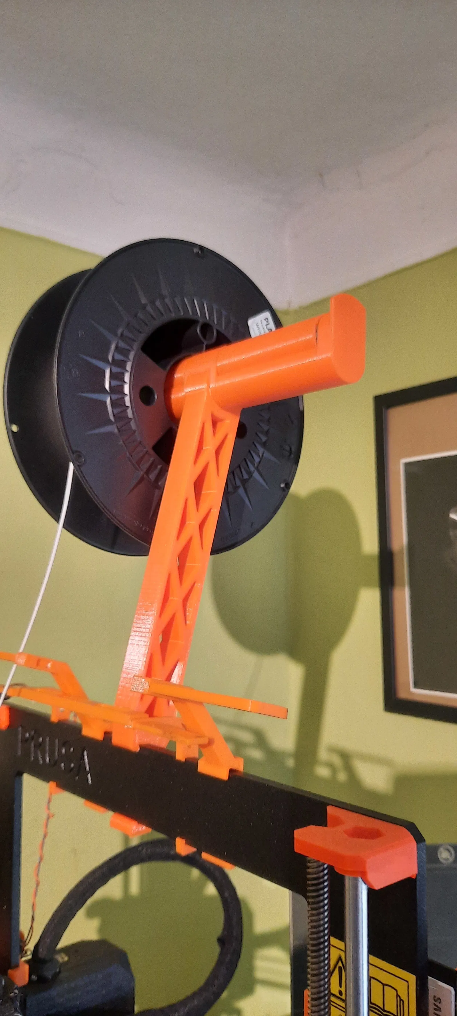 Giá đỡ cuộn dây tóc cho Prusa Mk3s, sử dụng vòng bi ván trượt hoặc giày patin để thay thế cho giá đỡ tiêu chuẩn, giúp dây tóc không bị lắc lư. Sản phẩm này cao hơn 10cm so với bản gốc và dễ dàng lắp ráp.