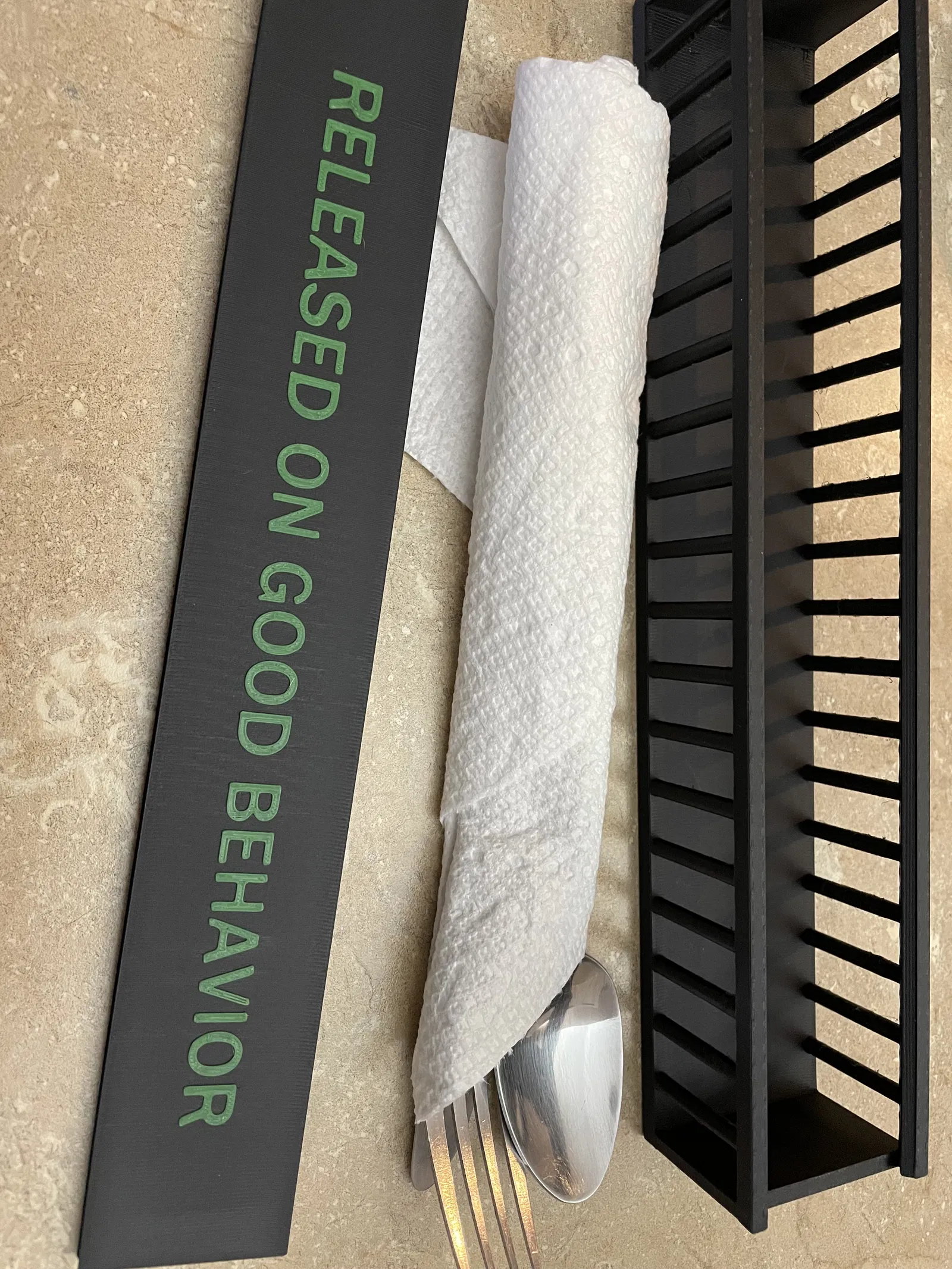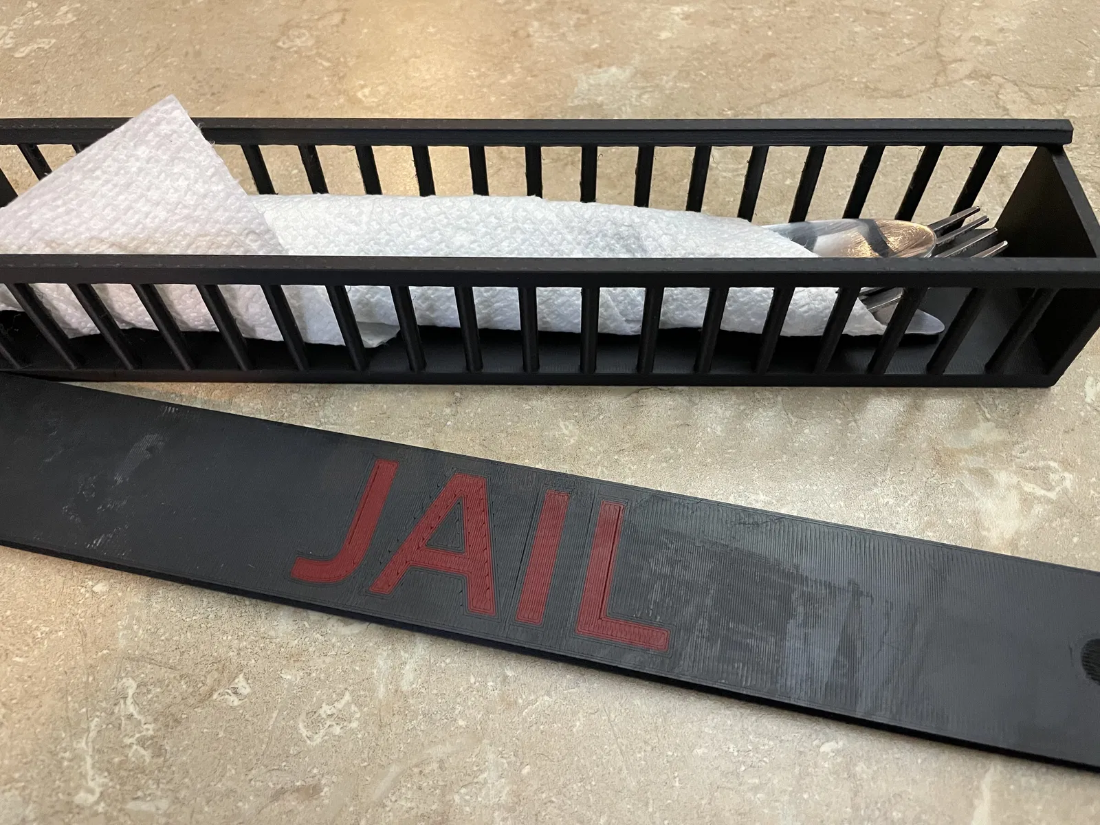 Nhà tù cho cái muỗng của bạn! Thoải mái bỏ dao, nĩa, muỗng vào hộp cơm này, khỏi sợ lung tung hay rơi rớt. In dễ dàng trên nhiều dòng máy.