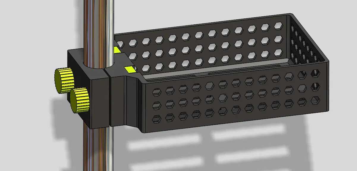 Giỏ tắm này được thiết kế để treo lên thanh treo vòi sen. Sản phẩm bao gồm ốc, vít, giỏ và kẹp, được in từ các vật liệu như PLA và PET, đảm bảo độ bền và tính tiện dụng cho phòng tắm của bạn.