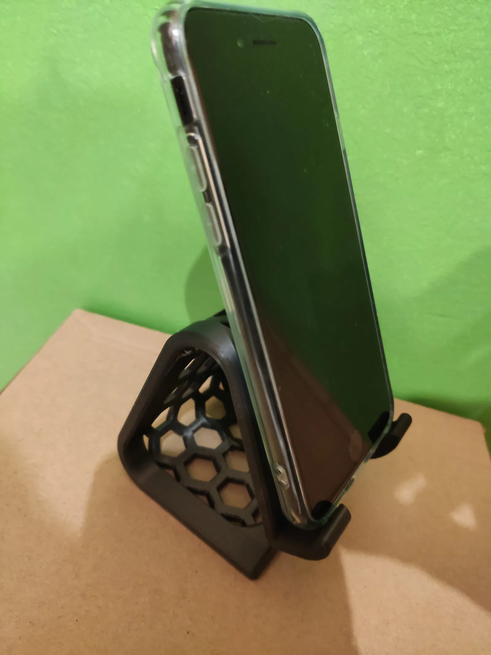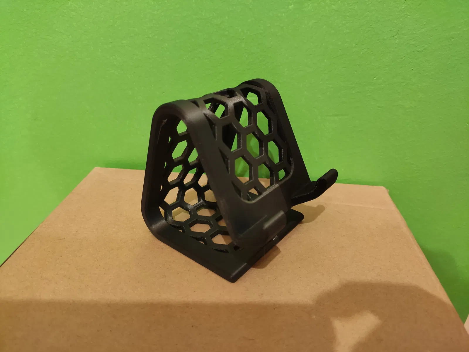 Phiên bản cải tiến của giá đỡ điện thoại lục giác. Mô hình được thiết kế để in dễ dàng hơn, thẩm mỹ hơn với hoa văn liền mạch, cổng sạc không cần giá đỡ và các thanh chia dày hơn. Thích hợp in số lượng lớn.