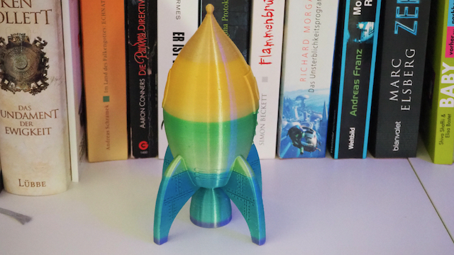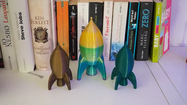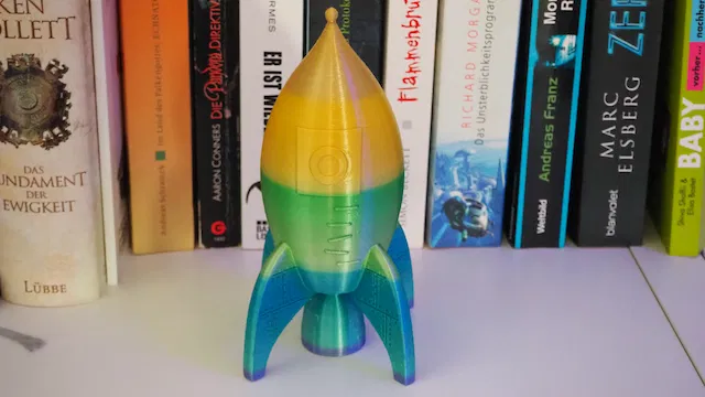 Chiếc tên lửa đồ chơi này là phiên bản đầu tiên của người dùng. Khuyến khích dùng support cho chân đế để tăng độ vững chắc. Tỷ lệ infill là 10% Gyroid. Kích thước gốc khoảng 230mm, có thể tùy chỉnh theo nhu cầu.