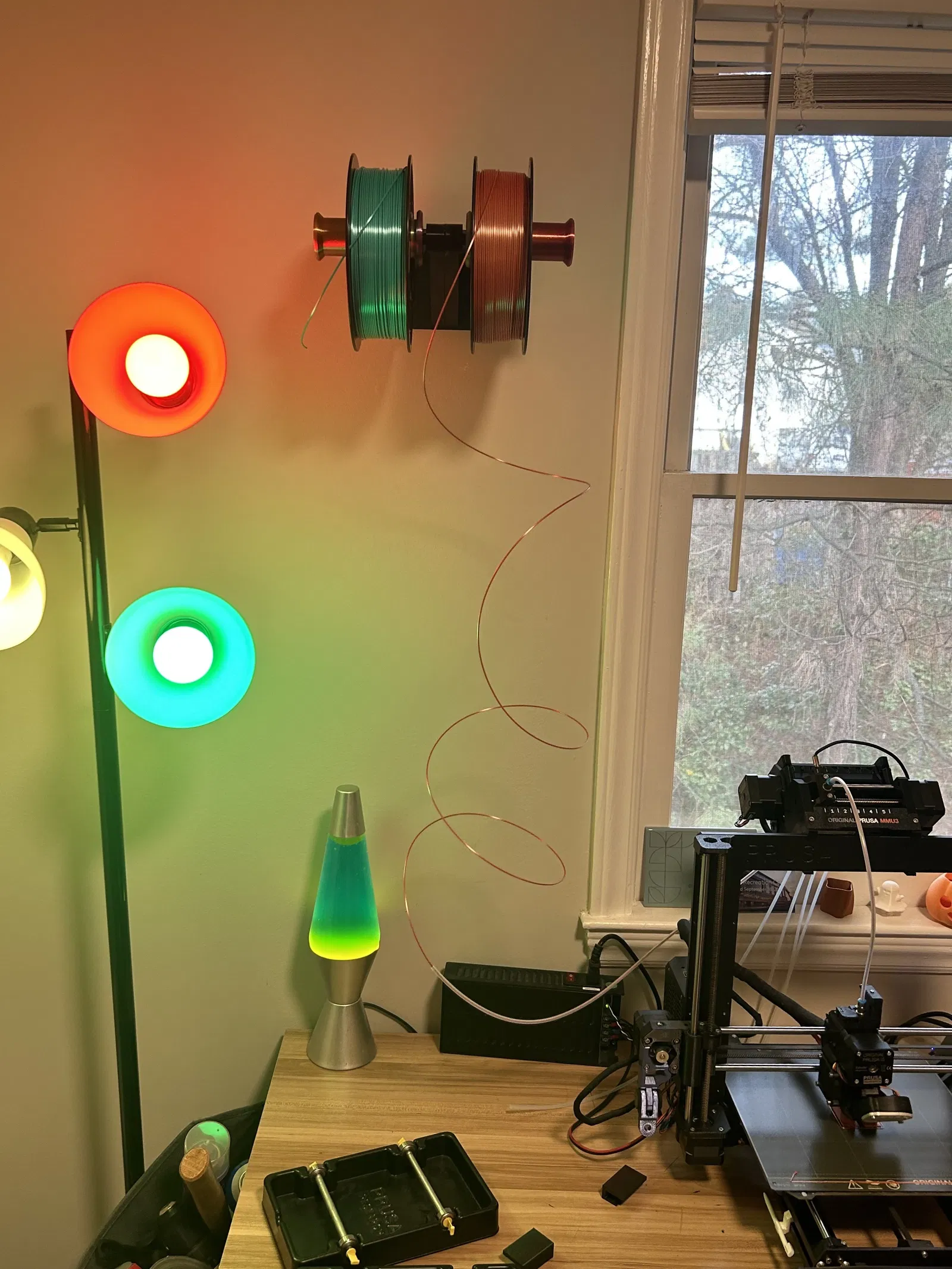Trời ơi, chủ nhà không cho bạn khoan lỗ tường hả. Làm sao để sắp xếp mấy cuộn filament đang dùng mà không chiếm hết diện tích bàn làm việc đây? Mọi thứ thật tuyệt vời khi bạn có thể dùng đinh vít...