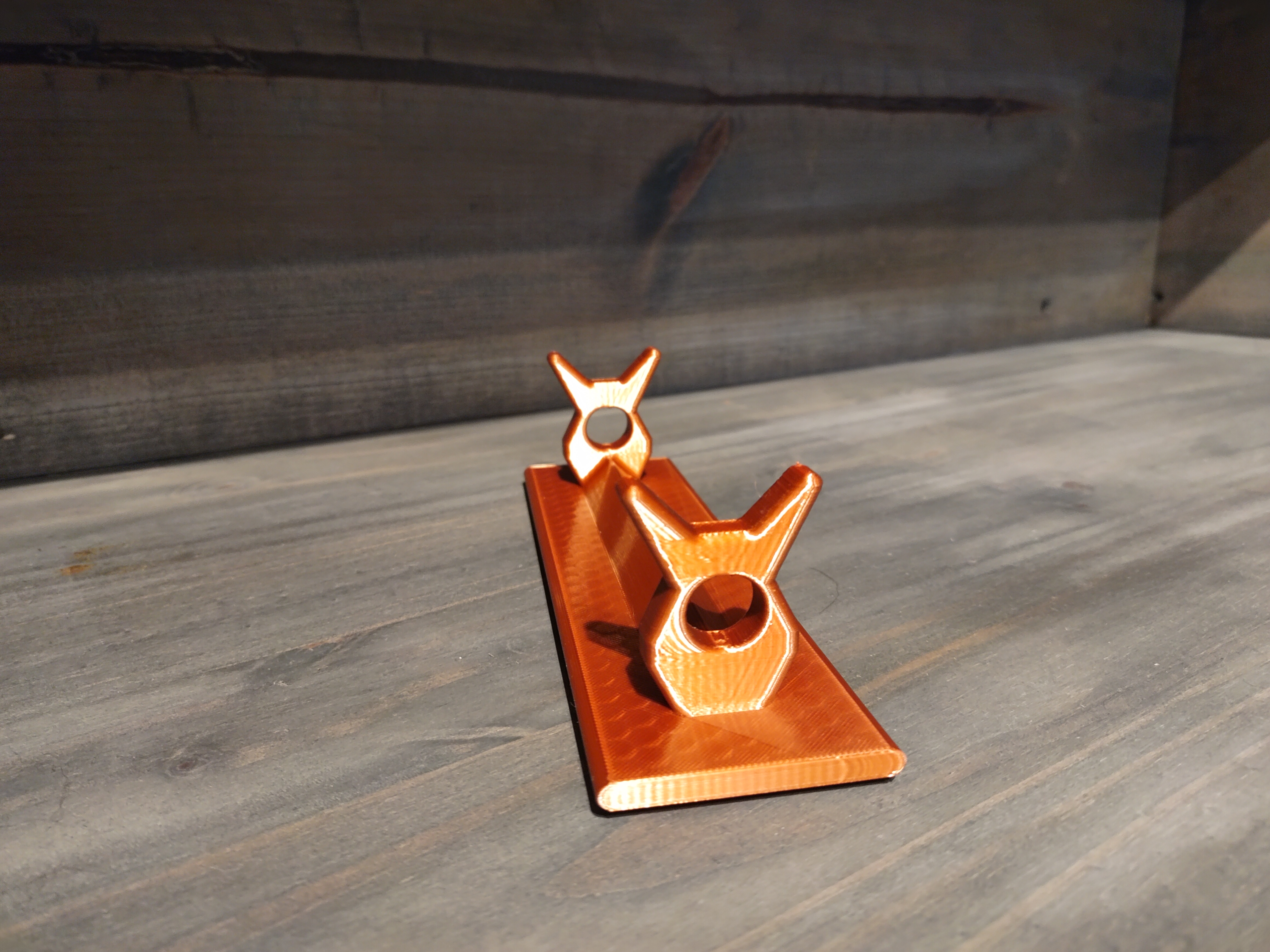 Đế sáo ngang đơn giản, thích hợp để trên kệ hoặc bàn. Dễ in, không cần support, có thể dùng PLA. Tác giả mong nhận được phản hồi về màu sắc và cách sử dụng từ cộng đồng.