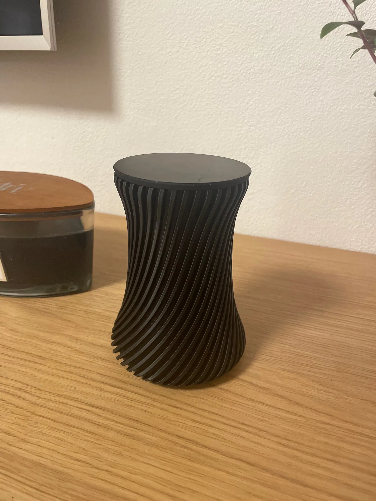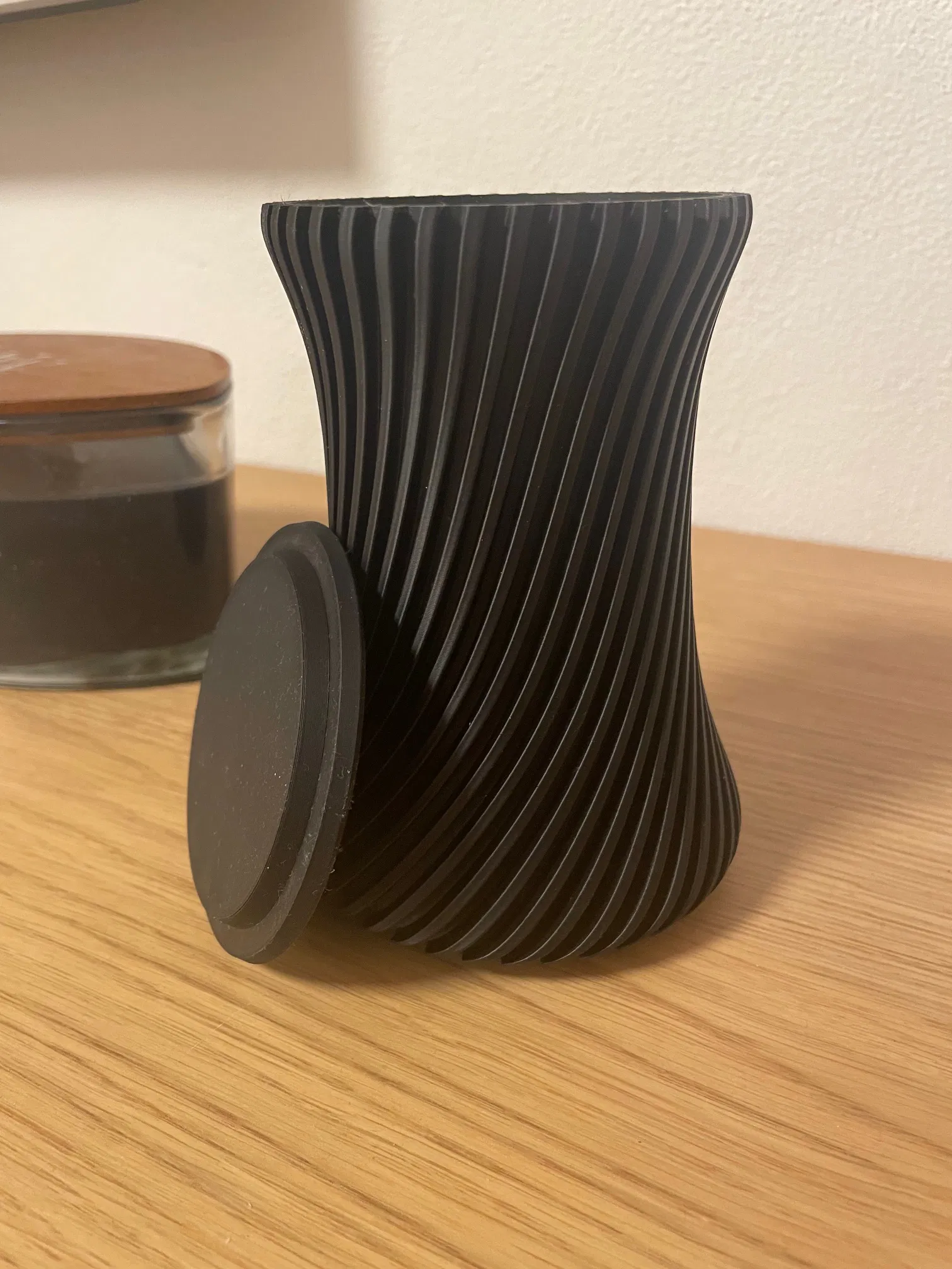 Bạn có thể dùng làm lọ hoa trang trí hoặc hũ đựng có nắp. Mô hình 'Vaza v3.f3d' ban đầu được thiết kế với đường kính lớn hơn và chỉ thu nhỏ lại để in. Kèm theo file gcode sẵn sàng để in với kích thước cuối cùng là dài 13 cm và rộng 10 cm.