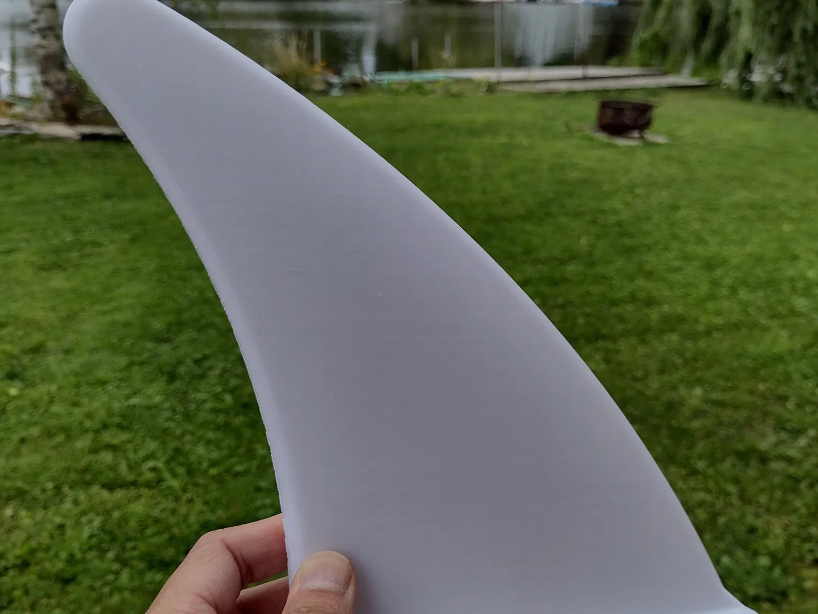 Tôi đã thiết kế một vây thay thế cho ván chèo của một người bạn. Gốc của vây dày hơn so với bản gốc nên nó sẽ mạnh mẽ hơn. Chúng tôi đã thử nghiệm nó vào cuối tuần và nó hoạt động tốt.