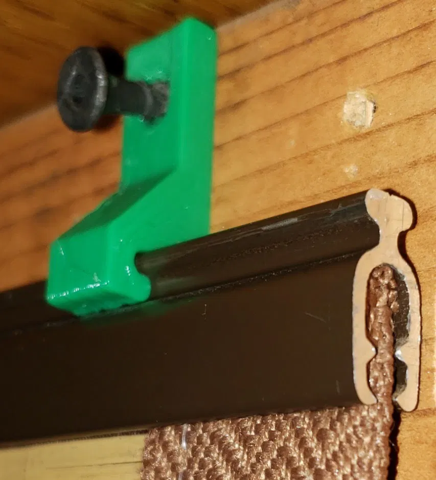 Tái chế rèm cửa dạng tấm trượt thành phông nền video call với bộ kẹp in 3D. Dùng vít thạch cao để treo lên tường hoặc trần nhà. Phù hợp với rèm có thanh nhôm dày ~6mm.