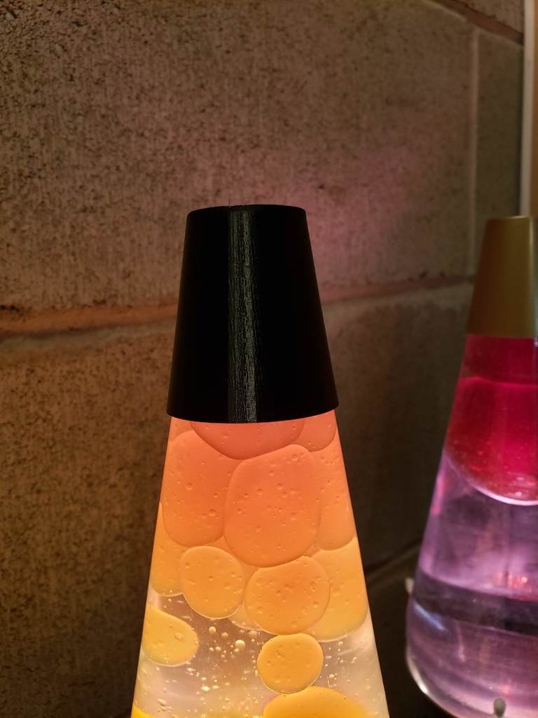 Nắp thay thế cho đèn lava bị mất. Mô hình được đo đạc và tạo dựa trên nắp gốc. Khuyến khích dùng PETG để đảm bảo độ bền do nhiệt độ cao, nhưng PLA cũng có thể dùng thử. Bạn có thể chỉnh sửa mô hình bằng Tinkercad.