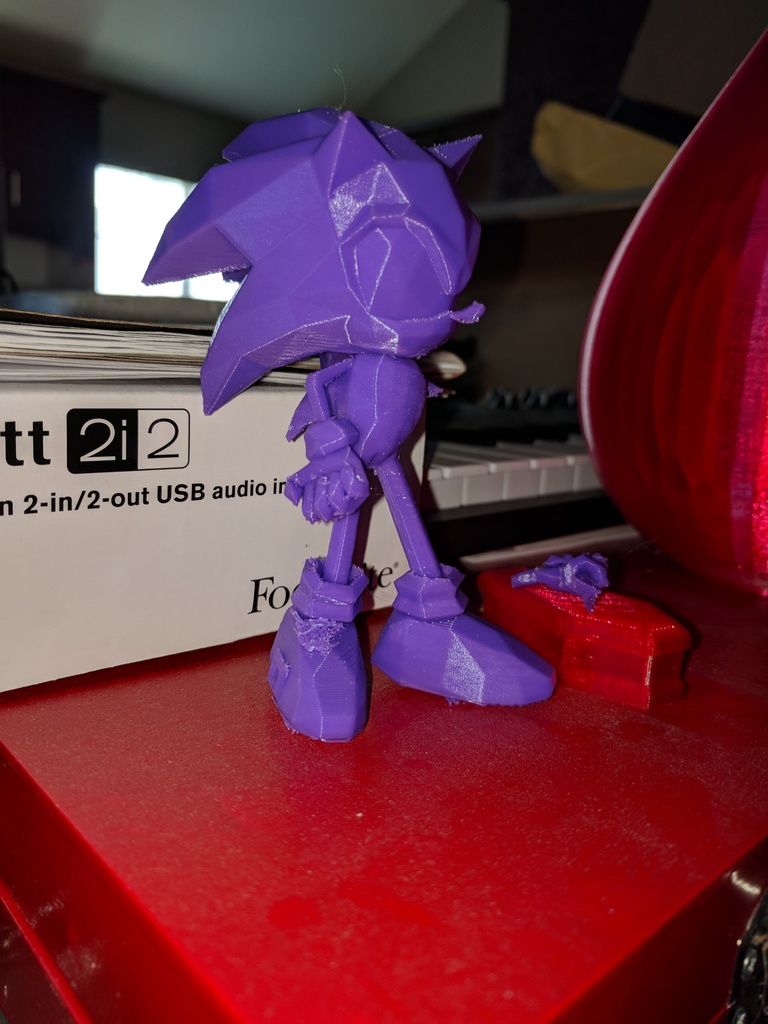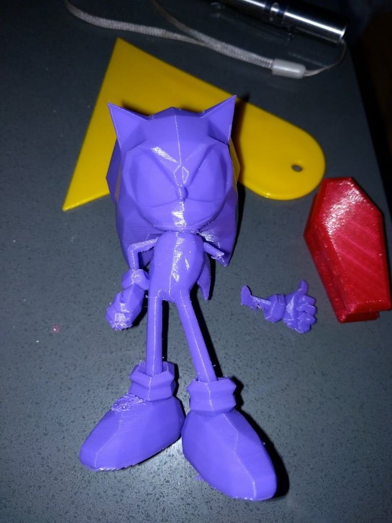 Cái tay trái của Sonic bị gãy lúc tui gỡ support ra, mà như mấy bồ thấy đó, cái này sửa cũng dễ à. Ngoài vụ gãy tay lúc gỡ support, thì cái mô hình này in ra cũng đẹp lắm. Làm thêm chút hậu kỳ nữa là giao cho thằng bé vui vẻ được rồi. Cái mô hình này sẽ có thêm đế hoặc gì đó để giữ chân lại, tại cái đầu Sonic nó nặng quá, không có đế là nó cứ bị ngã hoài à.