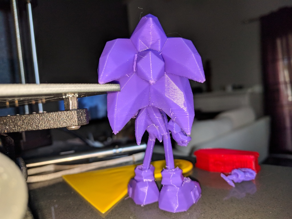 Mô hình Sonic the Hedgehog Low Poly được in bằng PLA 1.75mm. Tuy có bị gãy tay lúc gỡ support nhưng dễ sửa. Mô hình cần có đế giữ vì đầu nặng dễ bị ngã.