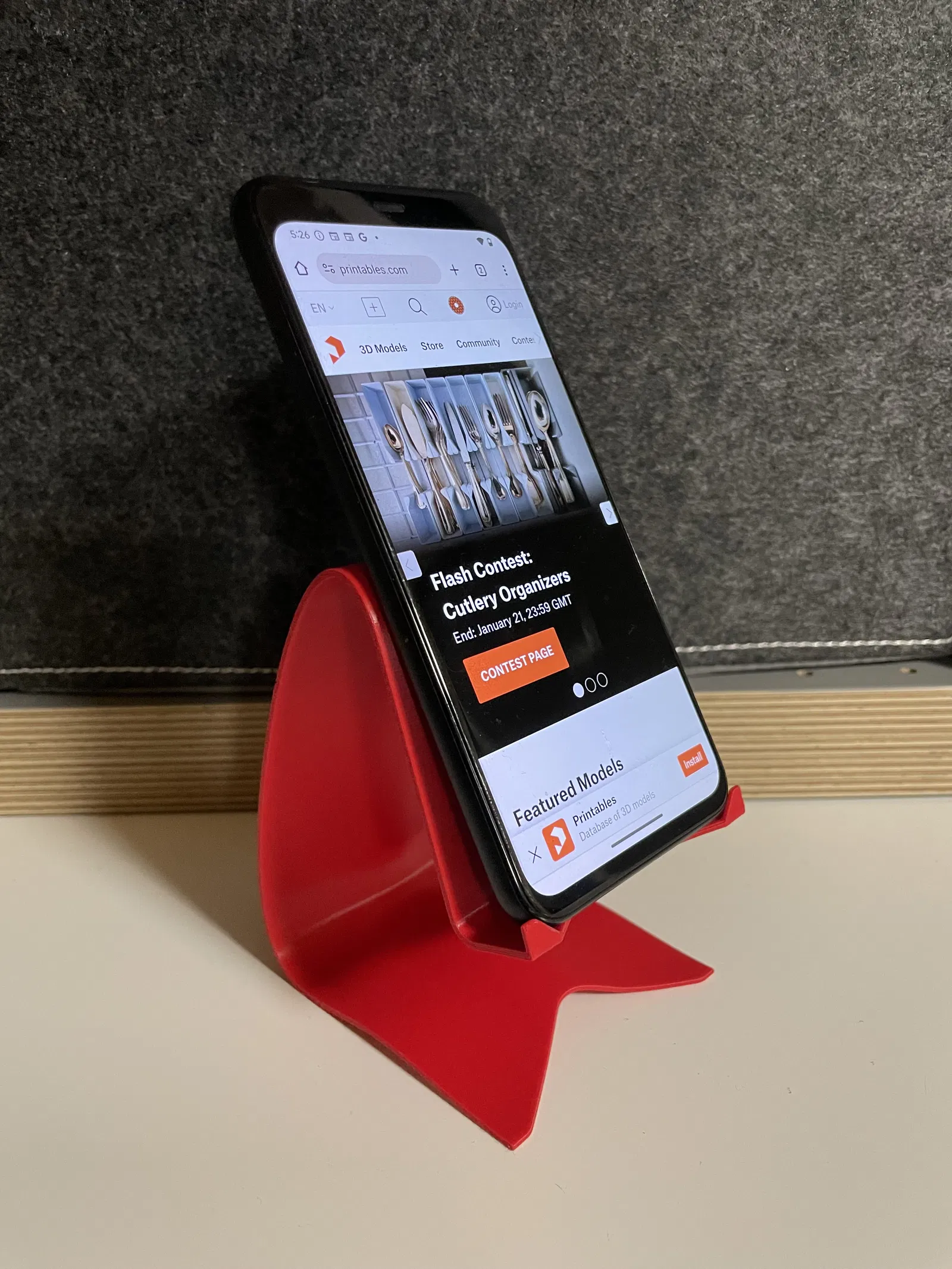 Chiếc giá đỡ điện thoại được in nhanh chóng, uốn cong đẹp mắt và hoàn toàn miễn phí! Điện thoại nghiêng 20 độ, rất lý tưởng để trên bàn làm việc.
