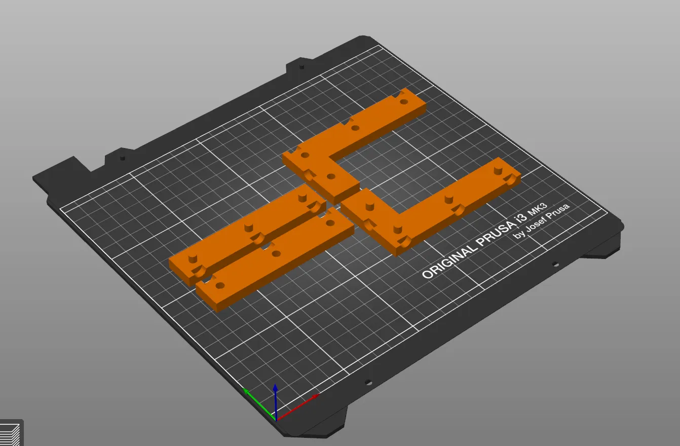 Tải STL vào phần mềm cắt mà bạn chọn và chọn “Chia thành các đối tượng”. Đảm bảo mỗi đối tượng được định hướng đúng với các lỗ và chốt hướng lên trên.
