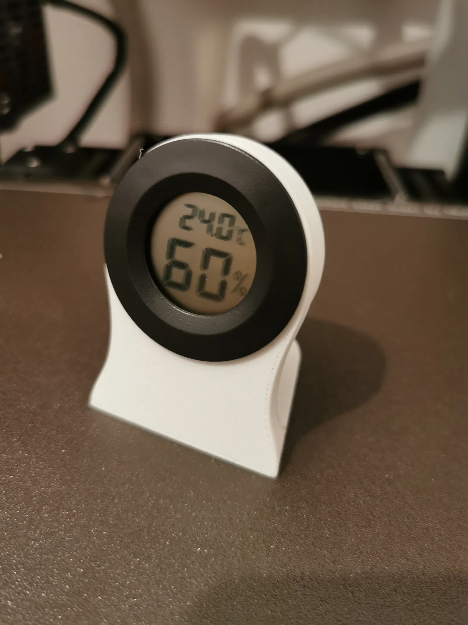 Chế cái đế cho mấy cái máy đo độ ẩm tròn hay có bán sẵn nè. Tui tự thiết kế lại vì mấy mẫu trên mạng có lỗi. Có file .f3d và .step cho dễ sửa, có thể gắn vừa Bambu AMS luôn. Rất thích hợp cho gia đình, đo nhiệt độ, độ ẩm.