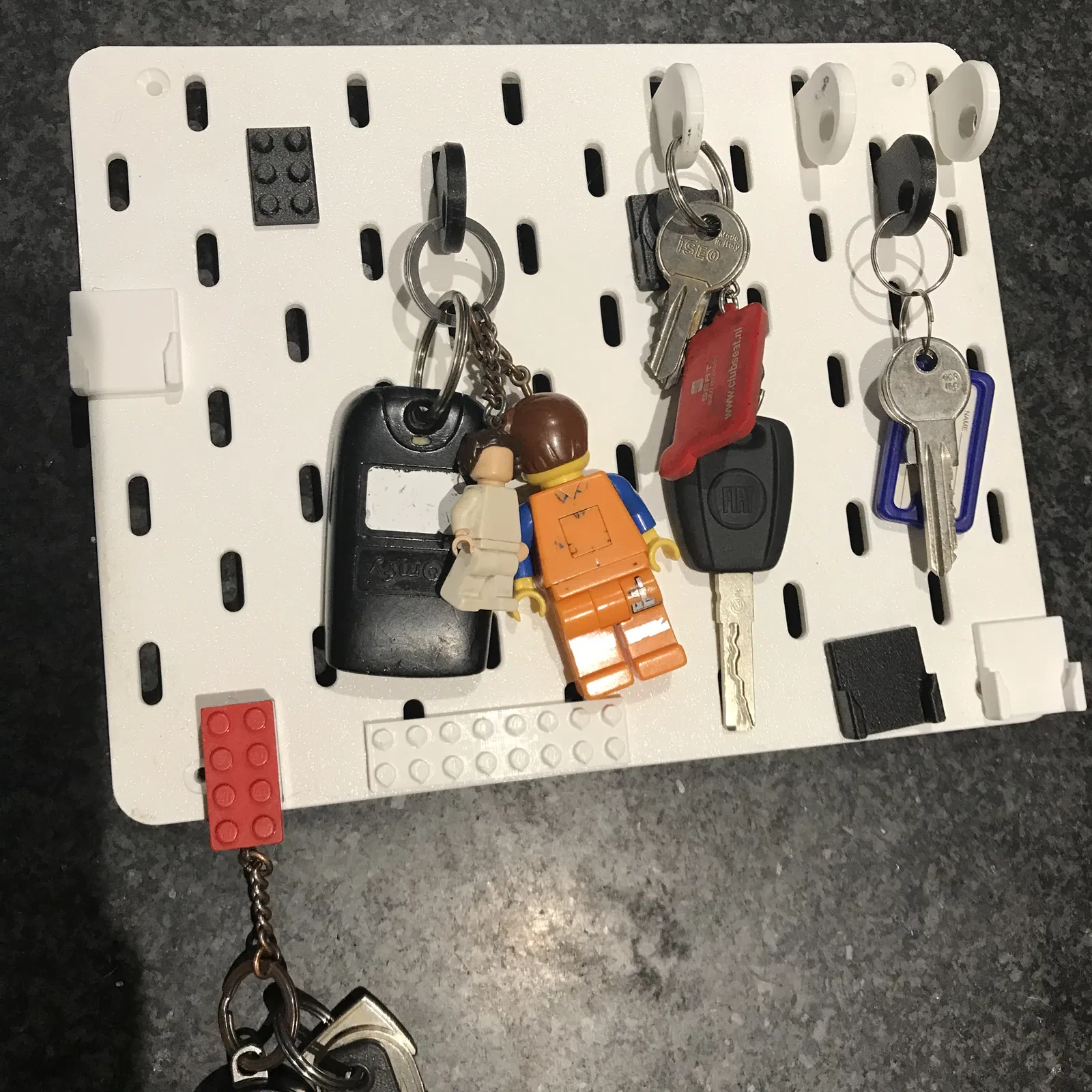 Treo chìa khóa của bạn lên bảng Ikea Skadis. Có các mẫu Lego, Euroshopper, hoặc loại móc vừa vặn. In bằng PLA hoặc PETG, với hoặc không cần support tùy loại.