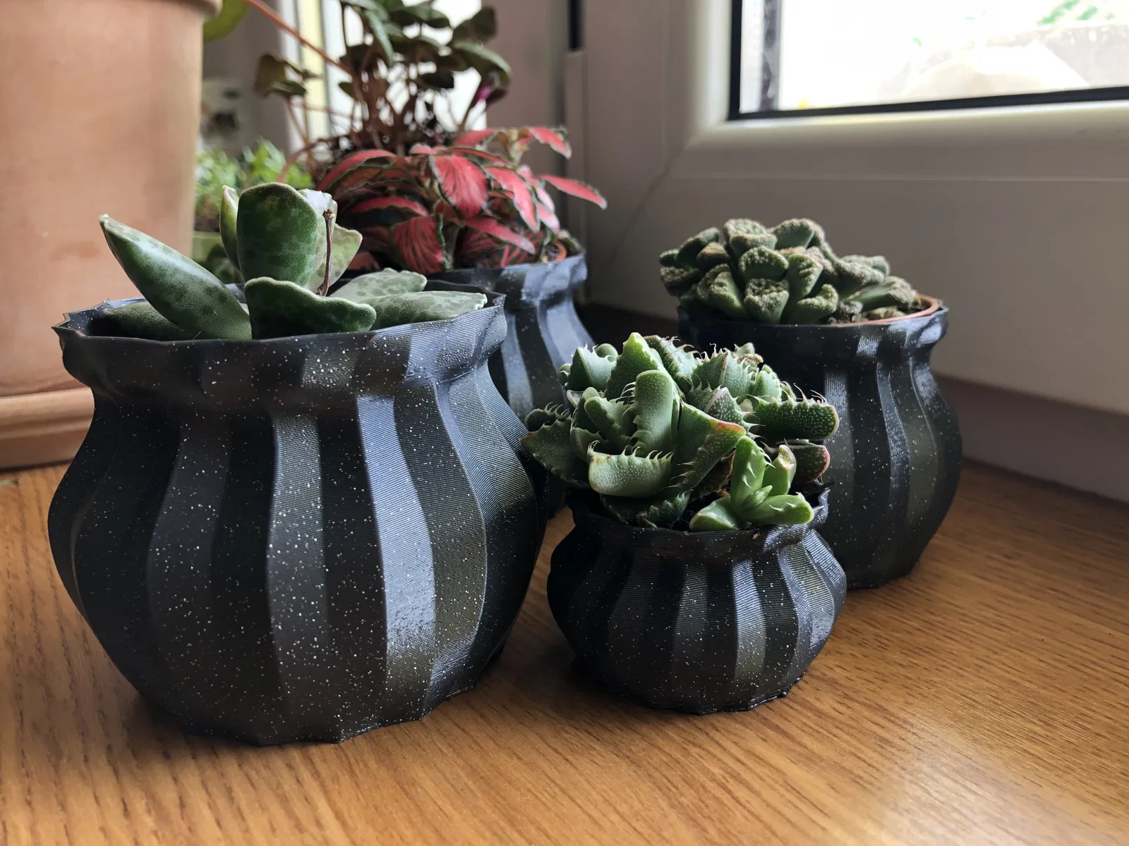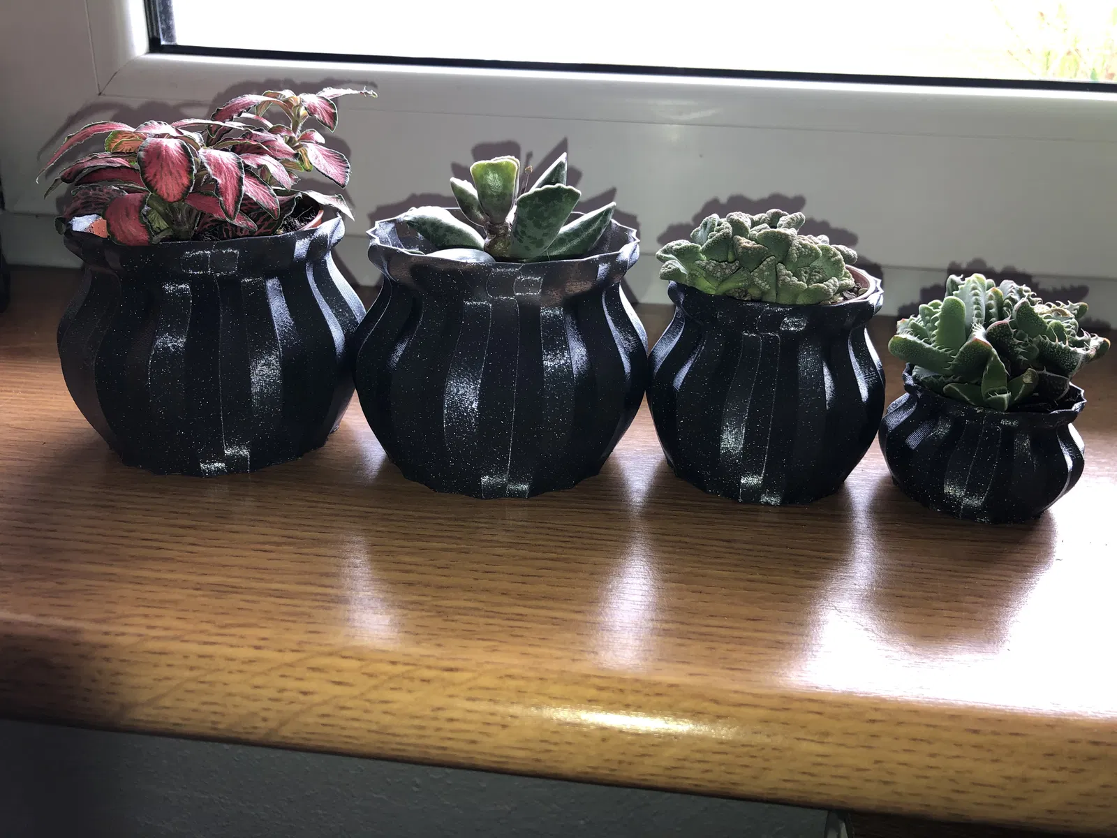 Chậu hoa với thiết kế đơn giản nhưng bắt mắt, hoàn hảo cho bệ cửa sổ. Mô hình này được in ở chế độ lọ hoa (vase mode) với các thông số kỹ thuật chi tiết về kích thước và độ dày thành, đảm bảo mang đến sản phẩm đẹp mắt và bền chắc.