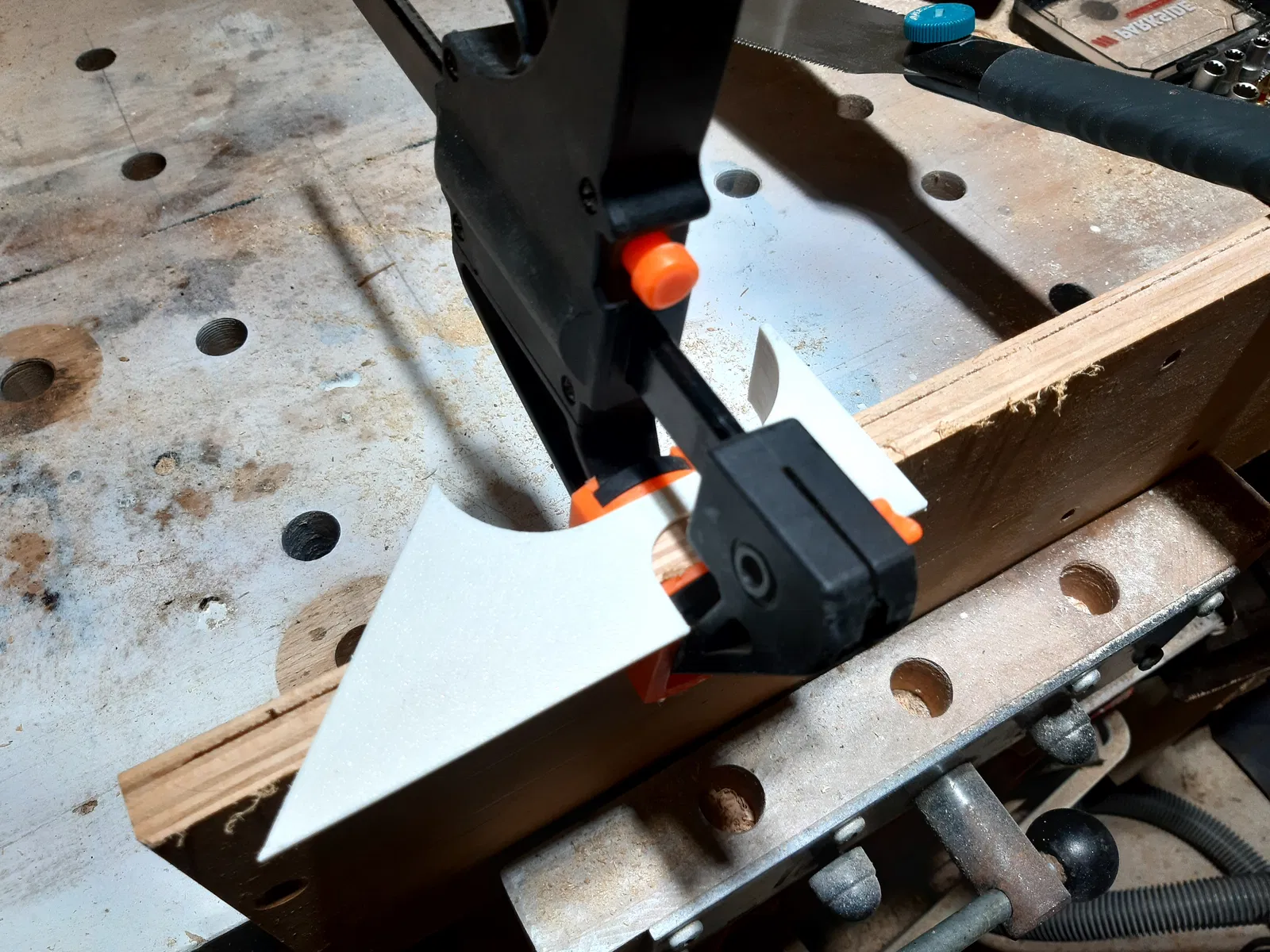 Cái dẫn hướng cưa nhỏ này giúp bạn cắt thẳng ở góc 90° và 45°, có chỗ gắn nam châm để giữ lưỡi cưa. Dùng để kẹp vào vật liệu hoặc làm khuôn đánh dấu.