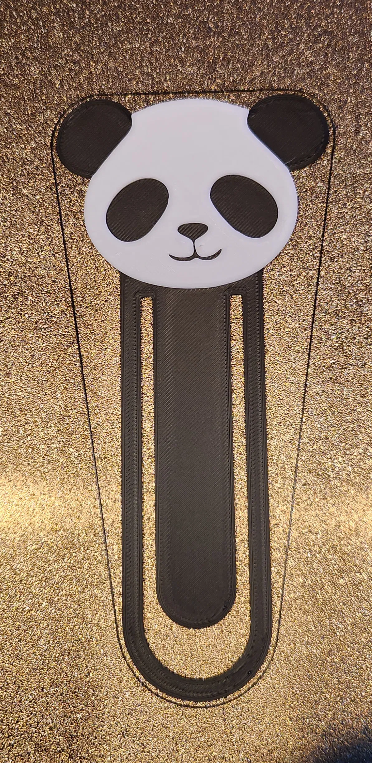 Kẹp sách hình gấu trúc, được thiết kế đặc biệt cho in 2 màu. Kích thước 70mm x 145.5mm. Lớp màu đen dày 1mm, lớp màu trắng dày thêm 1mm. In 1 màu cũng được, nhưng in 2 màu sẽ đẹp hơn nhiều.